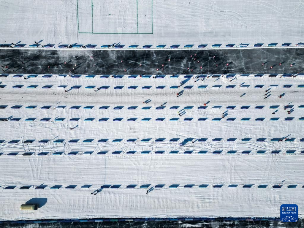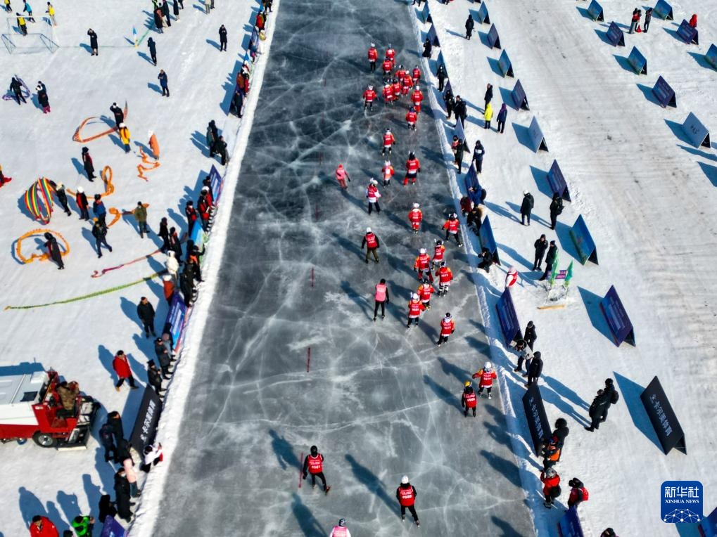 1月30日,参赛者在滑冰马拉松挑战赛中(无人机照片)。新华社记者 颜麟蕴 摄