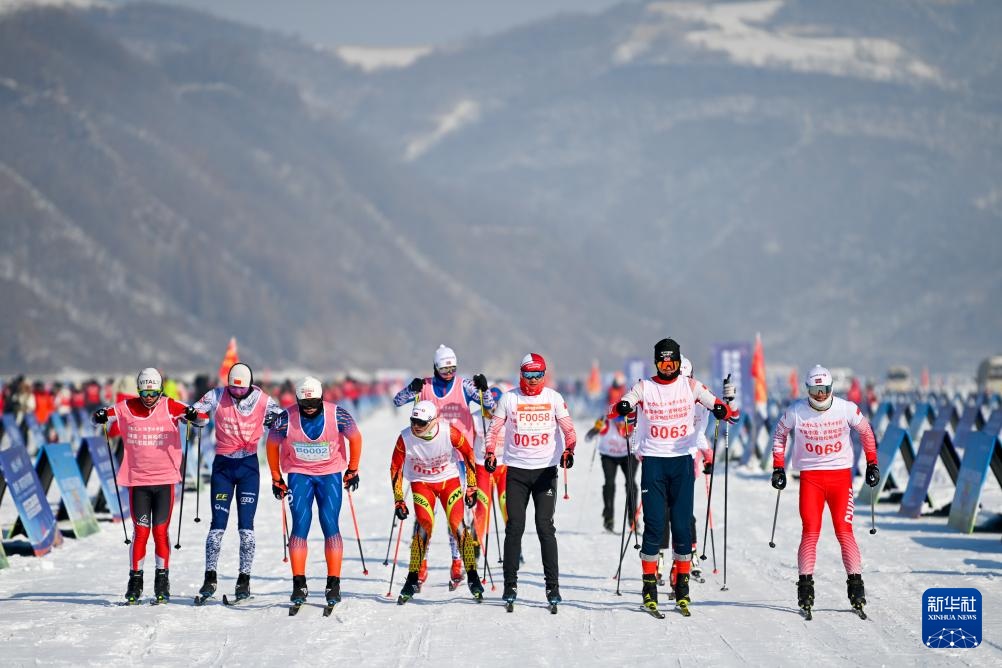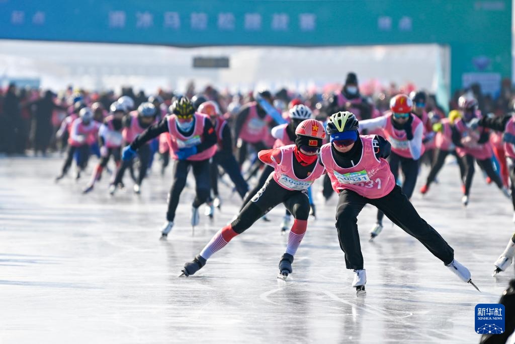 1月30日,参赛者在滑冰马拉松挑战赛中从起点出发。新华社记者 颜麟蕴 摄