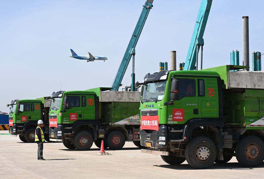 2023年9月28日,工作人员在空客天津第二条总装线项目开工现场查看设备准备情况。新华社记者赵子硕摄