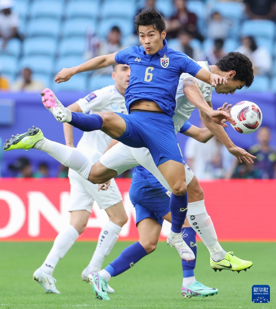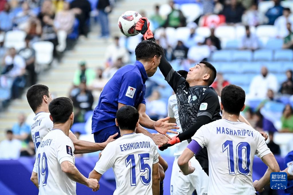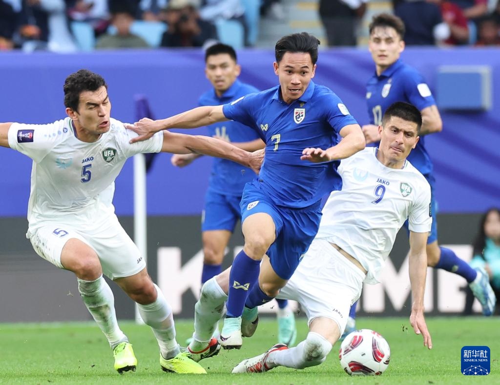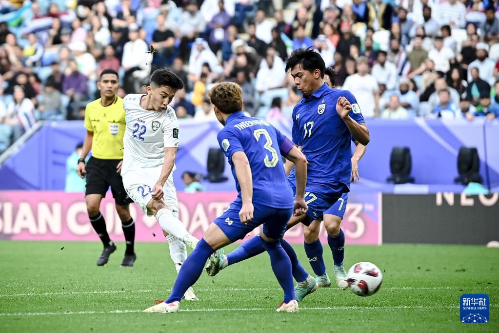 当日,在卡塔尔多哈贾努布球场举行的男足亚洲杯八分之一决赛中,乌兹别克斯坦队2比1战胜泰国队,晋级八强。