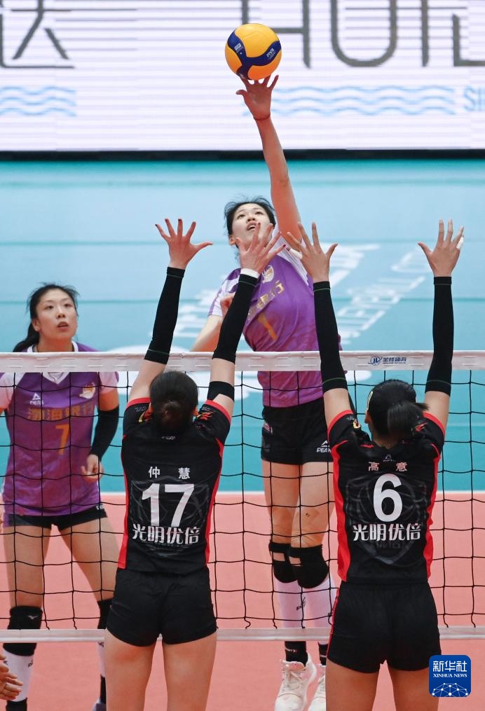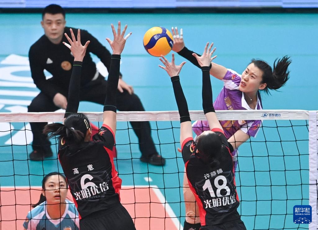 当日,在天津举行的2023-2024赛季中国女排超级联赛决赛第三场比赛中,天津渤海银行队3比0战胜上海光明优倍队,从而在五场三胜制的决赛中以总比分2比1取得领先。