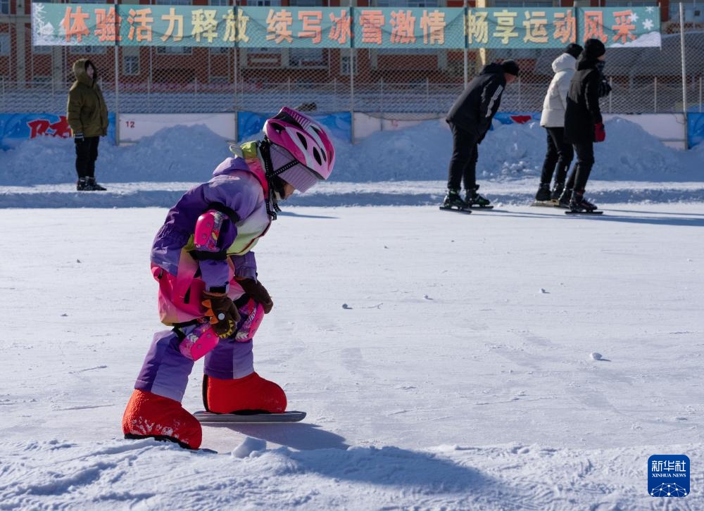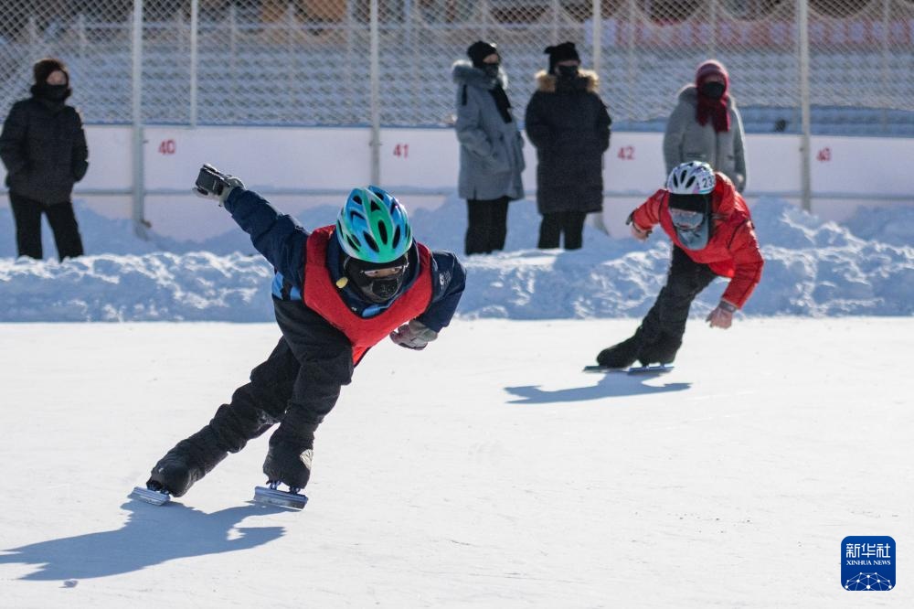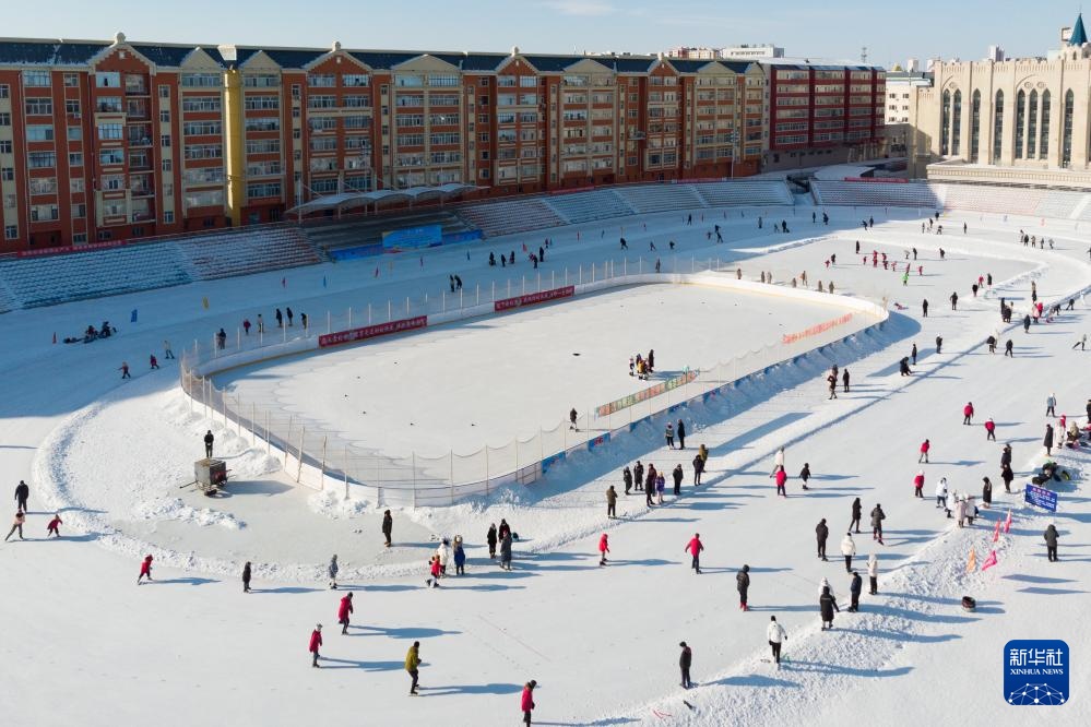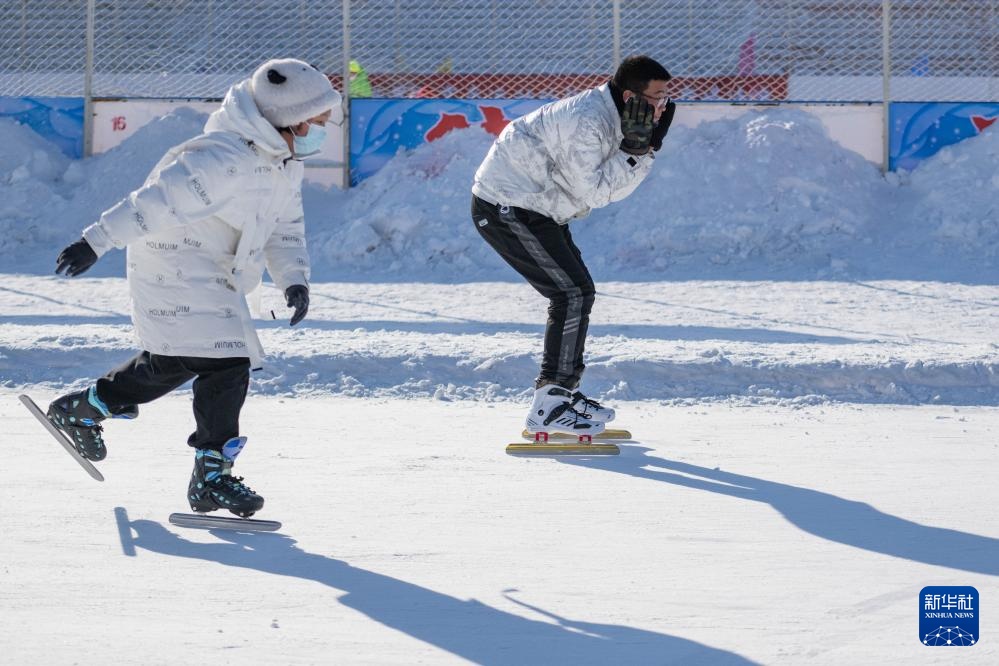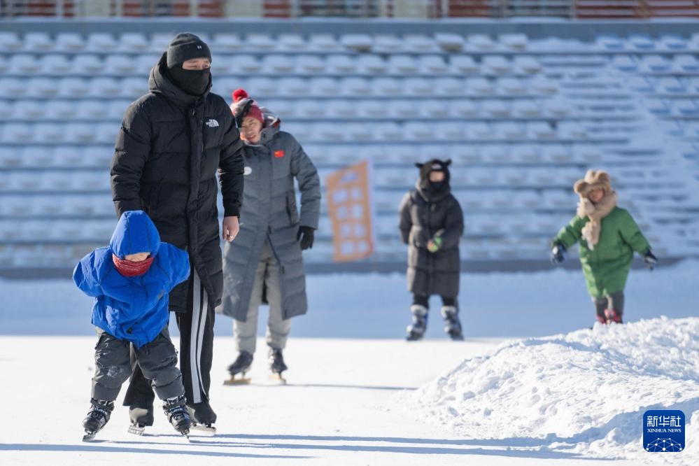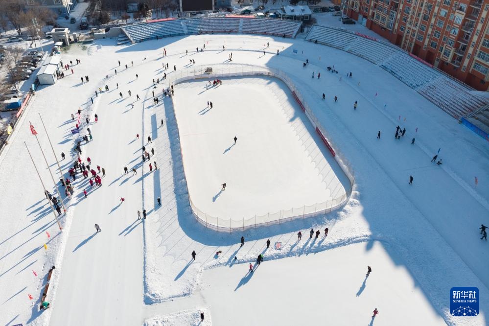 寒冬时节,在地处中俄边境的黑龙江省黑河市,许多市民来到全民健身中心的冰场滑冰,在锻炼身体的同时享受冰雪运动带来的乐趣。