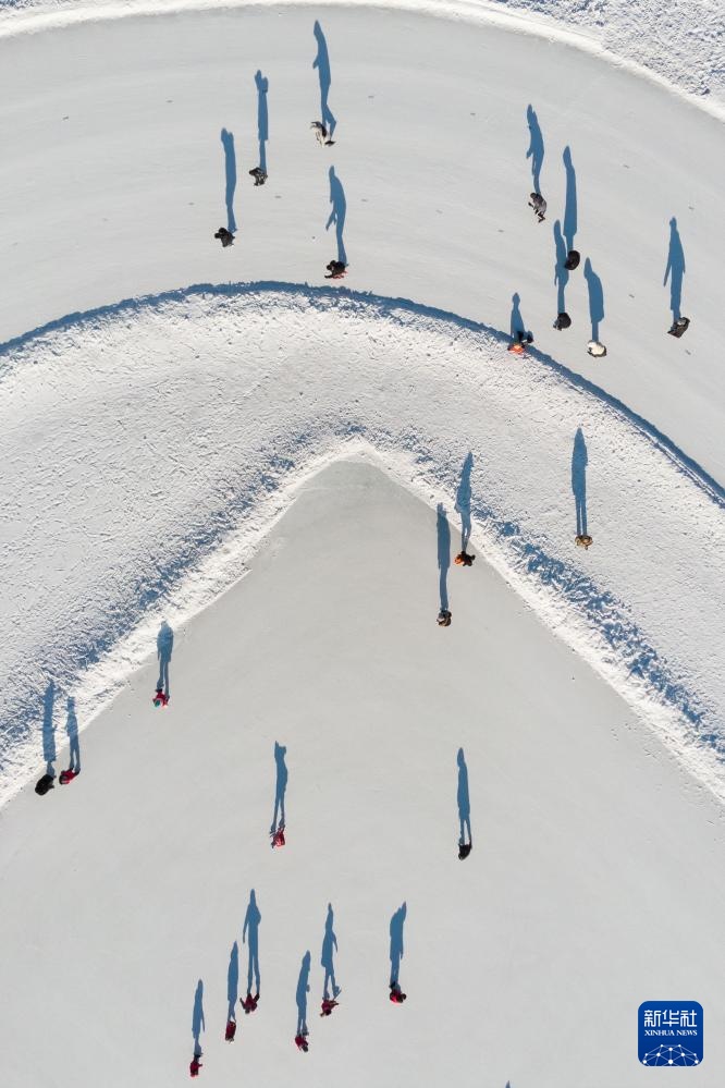 1月31日,市民在黑河市全民健身中心的冰场上滑冰(无人机照片)。新华社记者 谢剑飞 摄