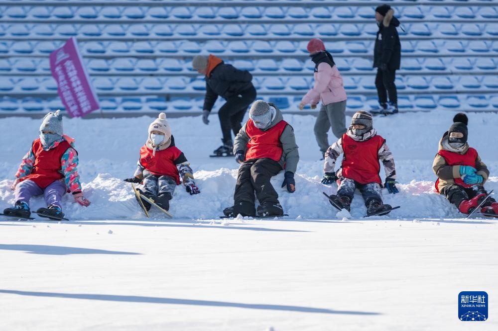 1月31日,小朋友在黑河市全民健身中心的冰场上滑冰。新华社记者 谢剑飞 摄
