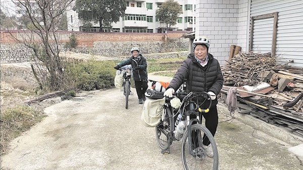 1月30日下午3时许,张嬴娟和儿子吉米终于骑到了英山县的家门口。他们是1月17日从上海出发的,耗时14天后骑行了700多公里,母子俩终于平安到家了。