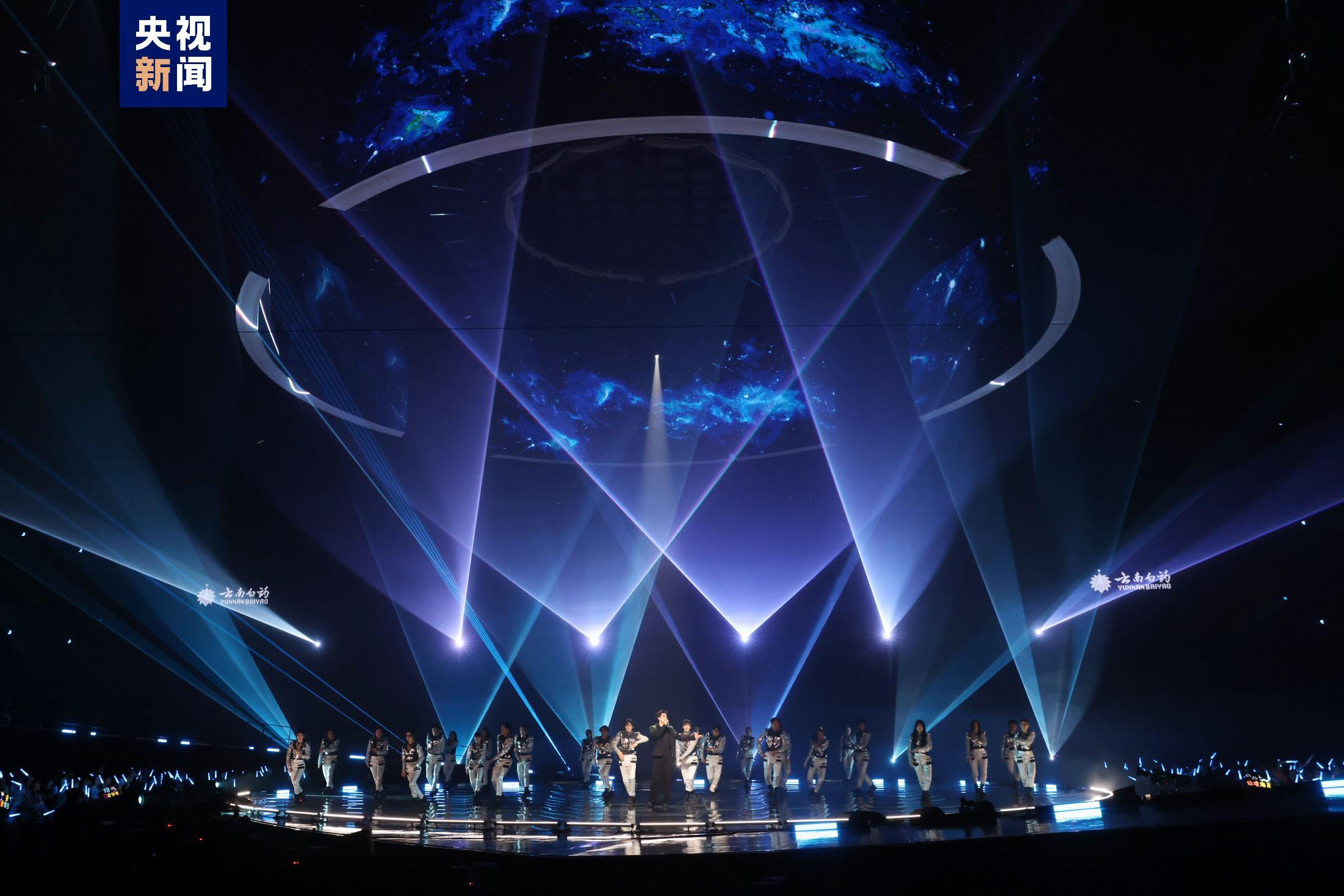 情景唱演秀《九州神话》利用XR技术再现经典神话场景,总台主持人康辉、撒贝宁、朱广权、尼格买提以“科普者”身份置身其中,讲述中华民族追日逐月、移山填海的浪漫文化故事,以古人之梦观照今人之路,用歌声诠释东方浪漫、展现华夏气韵;“东方夜莺”吴碧霞和化作月宫仙子的央视网虚拟主播小C携手,以极具穿透力的歌声搭配满满的科技感,浪漫上演《到深空更深处去》,讲述千百年来中华民族的飞天梦想。