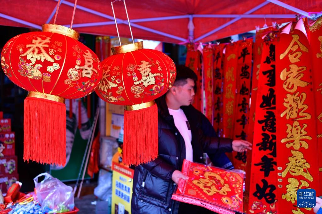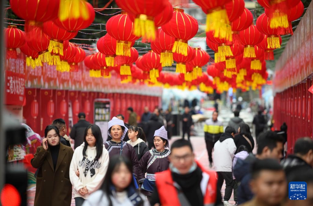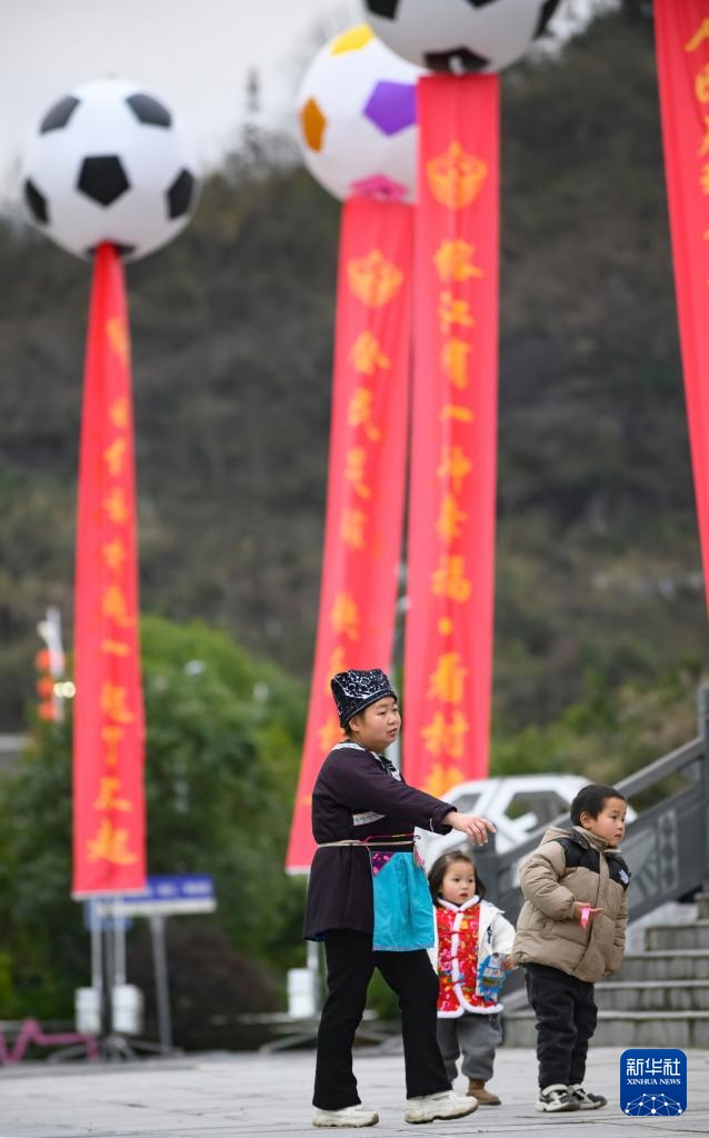 2月3日,“村超”之乡贵州省榕江县将举办“村超”贺岁足球赛和“村晚”民族文化展演等活动,迎接农历新年。在“村超”球场外的“村超村晚”年货大集市上,特色农特产品琳琅满目。前来观看“村超村晚”的游客和当地居民纷纷选购自己需要的年货。随处可见的“村超”足球元素和一抹抹“中国红”,将节日气氛渲染得喜气洋洋。