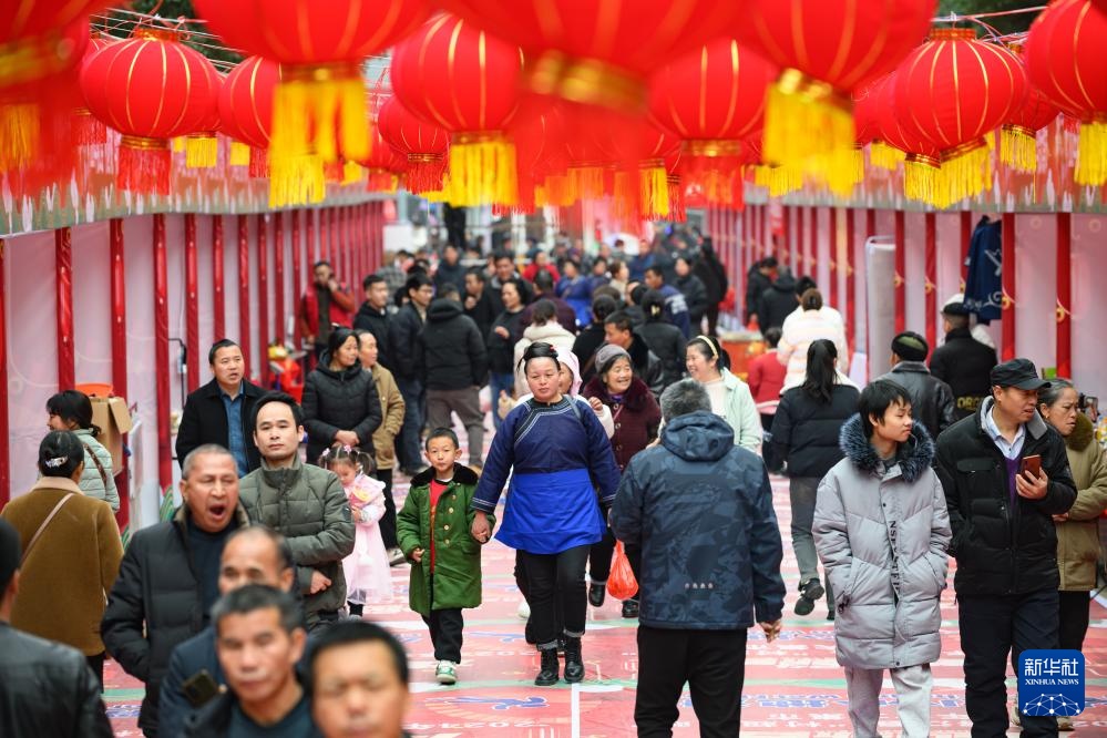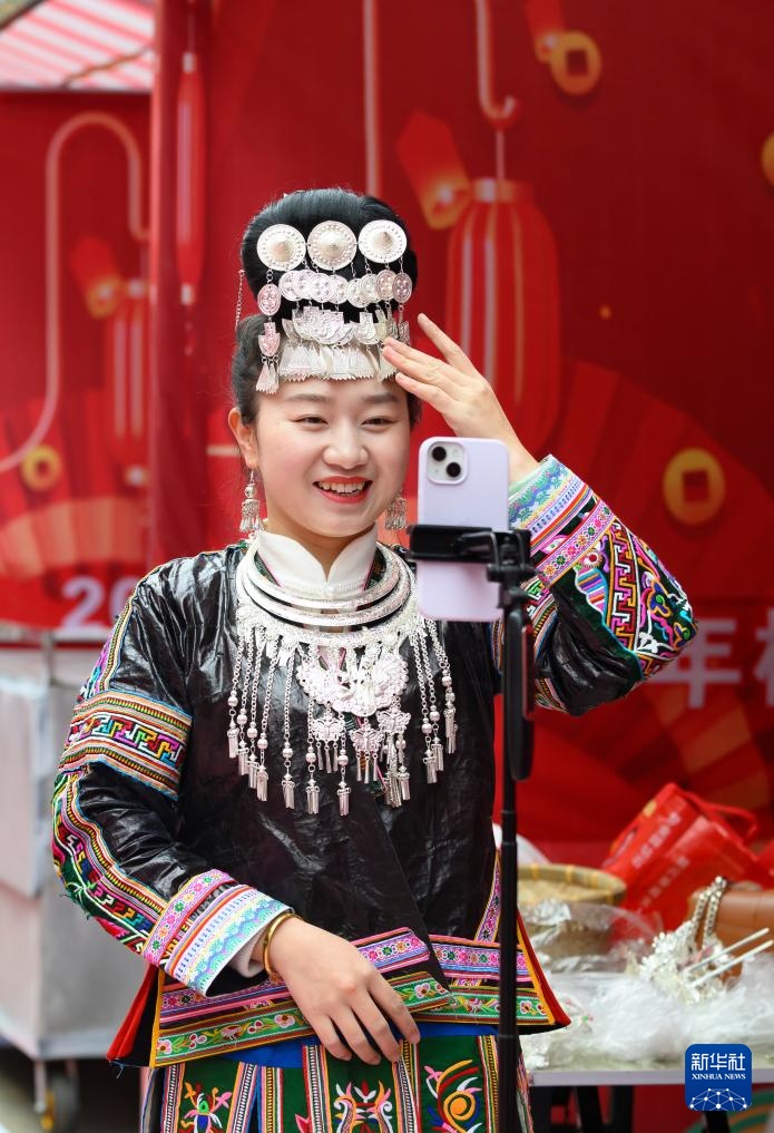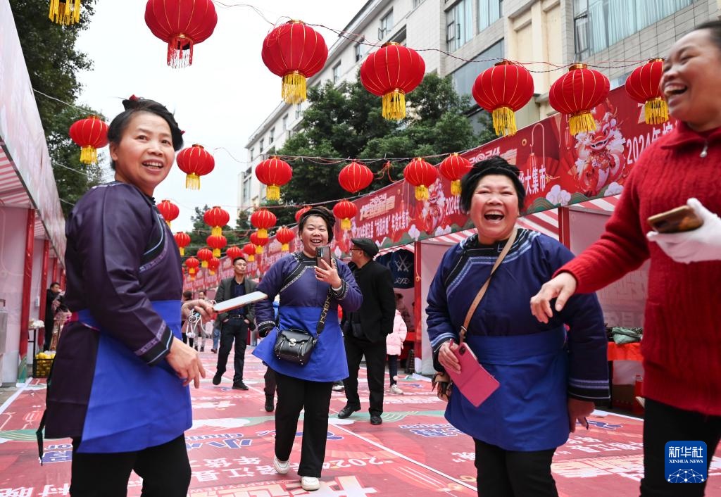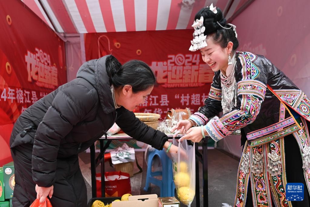 2月2日,当地少数民族妇女在“村超村晚”年货大集市上。新华社记者 刘续 摄
