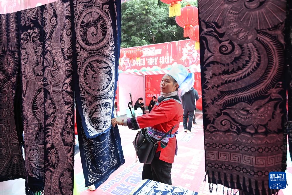 2月2日,当地少数民族妇女在“村超村晚”年货大集市上选购。新华社记者 刘续 摄