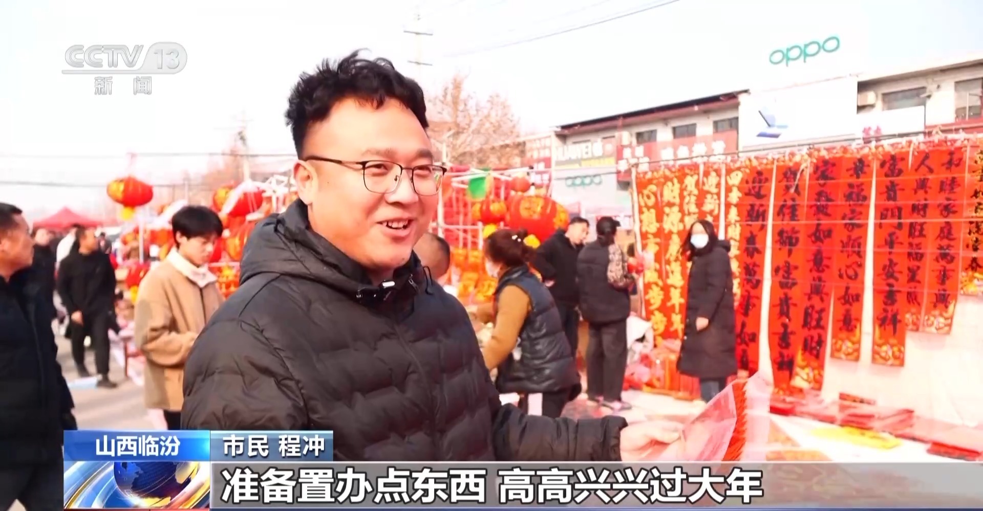 市民 程冲:买了点肉,买了春联,准备过龙年。置办点东西,高高兴兴过大年。