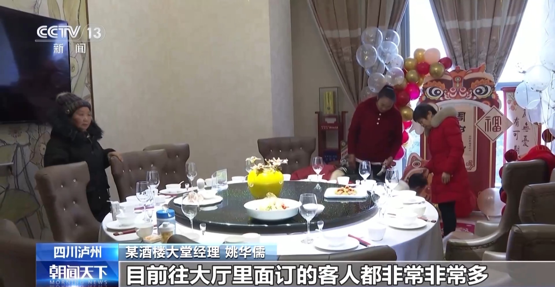 某酒楼大堂经理 姚华儒:到年三十我们有接近300桌的年夜饭套餐,我们的大包间都几乎订满了,目前往大厅里面订的客人都非常非常多。