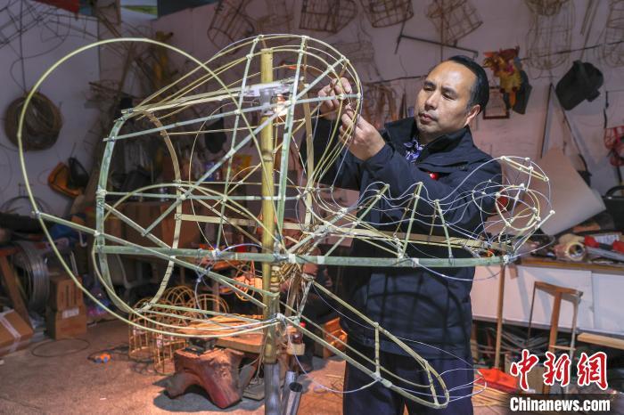 “传统龙灯的制作需要选取嫩度合适的竹子,用火烧竹使其柔软,便可以弯曲成型制作龙头。”从事“扎龙灯”已有30余年的史克滨告诉中新社记者,传统龙灯的制作需要百余道工序,火候的把握、扎竹的手法等都需要经年累月的练习。