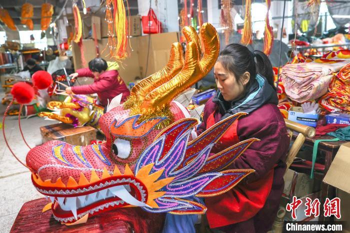 临近龙年春节,江西省级非物质文化遗产“城南龙灯”传承人史克滨十分忙碌。在他的制作工坊门前,一辆辆装载着龙灯的车带着年味驶向五湖四海。