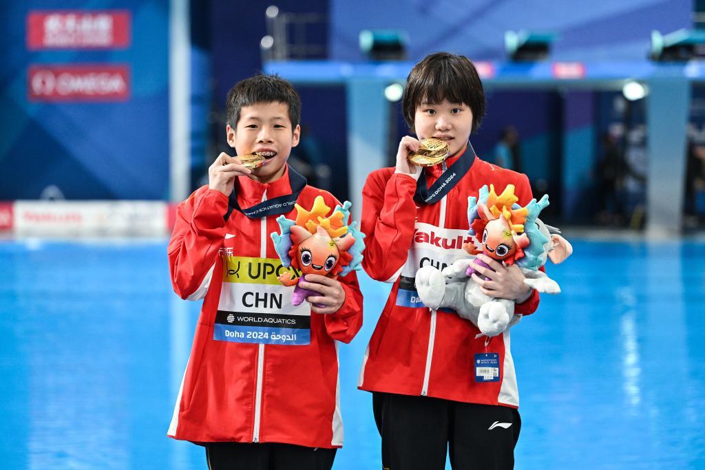 新华社多哈2月3日电(记者刘旸、周欣、孙哲)3日,在2024多哈游泳世锦赛第二个比赛日中,中国跳水组合张家齐/黄建杰夺得混双10米台冠军,花样游泳女单技术自选决赛中,徐汇妍摘得铜牌。