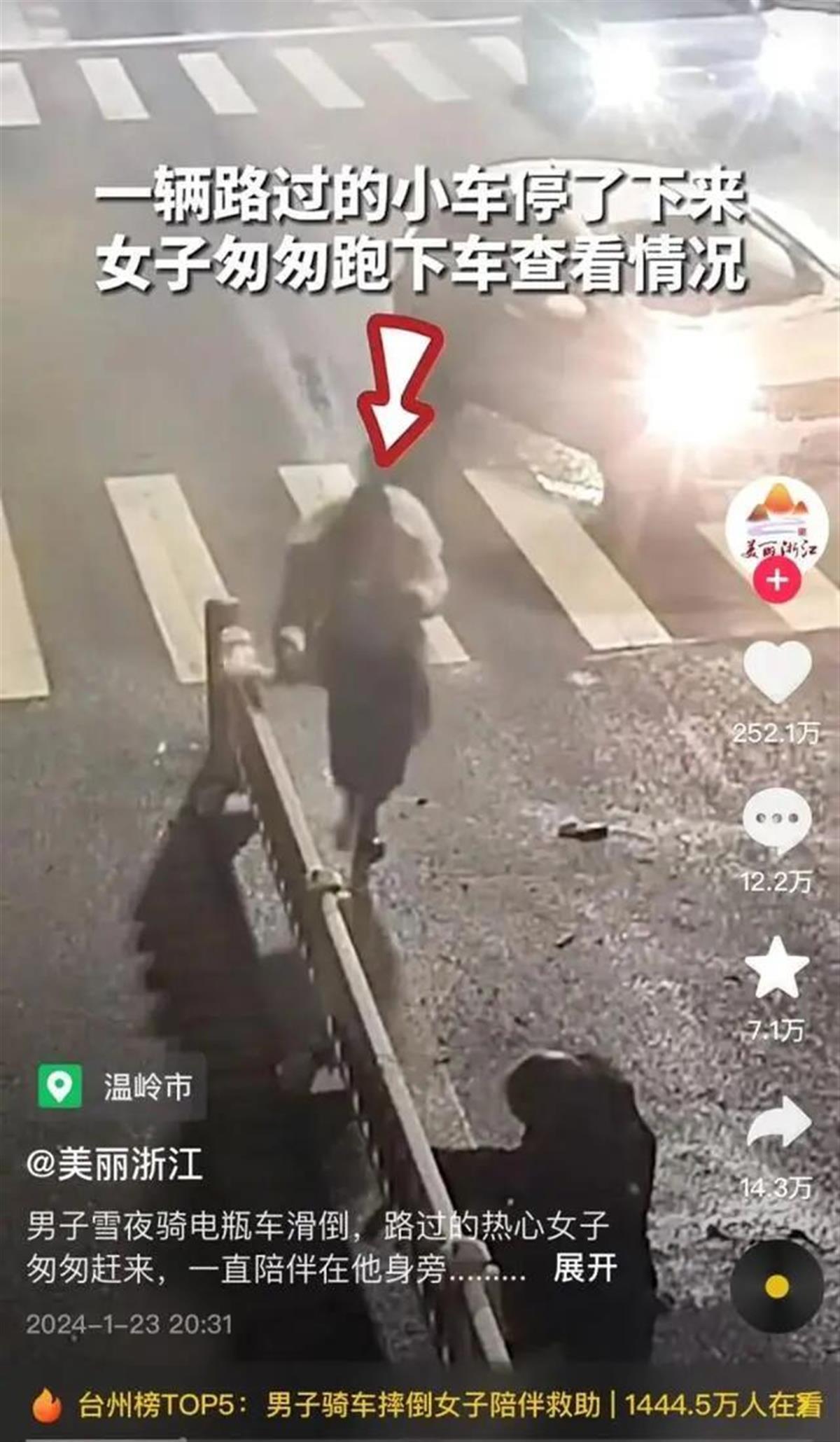 每到恶劣天气,每当他人有困难时,都不乏这种伸出援手的小善大爱。不久前,一则“男子雪天骑车摔倒,路过女子暖心施救”的短视频刷屏了,说的是一位老师下班途中“教科书式”救人的佳话。
