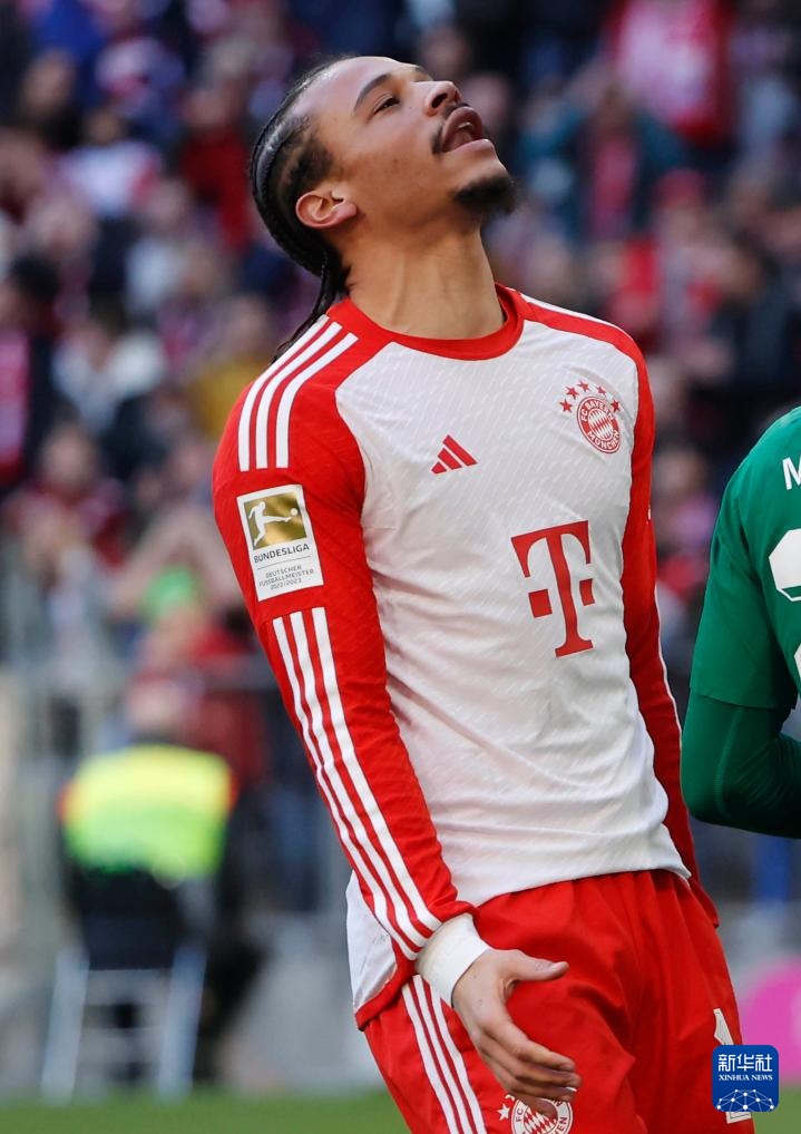 2月3日,拜仁慕尼黑队球员萨内在错失进球机会后。新华社发(菲利普·鲁伊兹摄)