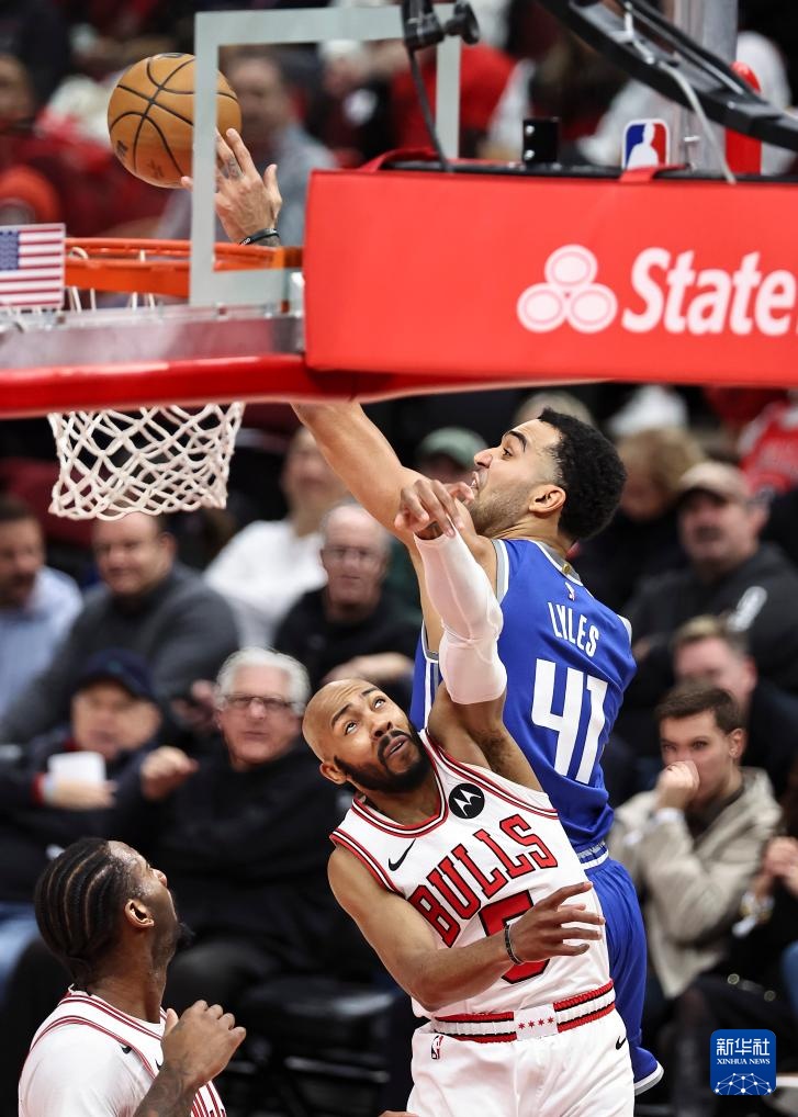 2月3日,公牛队球员卡鲁索(右)在比赛中上篮。新华社发(乔尔·莱纳摄)