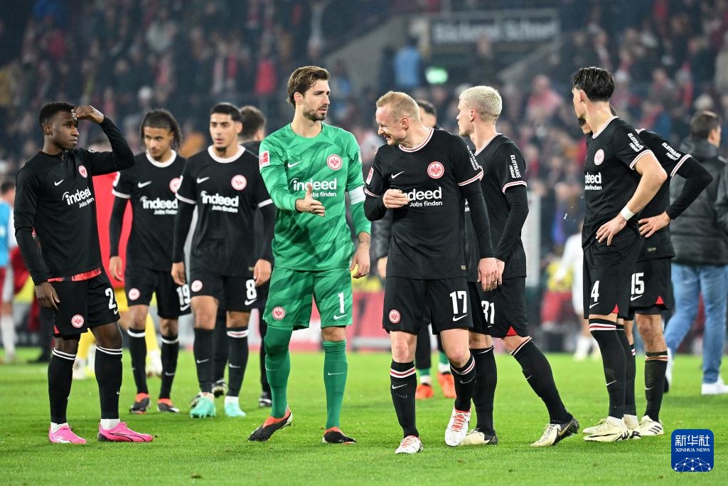 2月3日,法兰克福队球员在比赛后。新华社发(乌尔里希·胡夫纳格尔 摄)