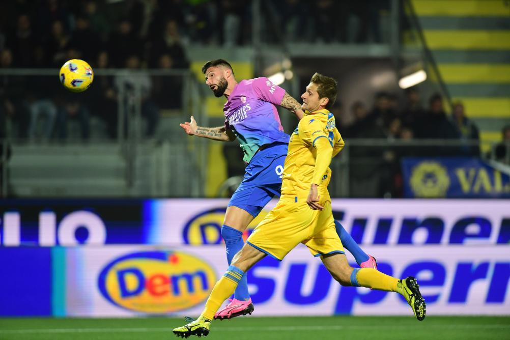AC米兰在客场对阵弗罗西诺内的比赛中,率先取得进球,第17分钟,“红黑军团”一次快速反攻中,莱奥挑传助攻吉鲁近距离头球破门。不过几分钟后,莱奥不慎手球送点,苏莱为主队主罚,一蹴而就,扳平比分。