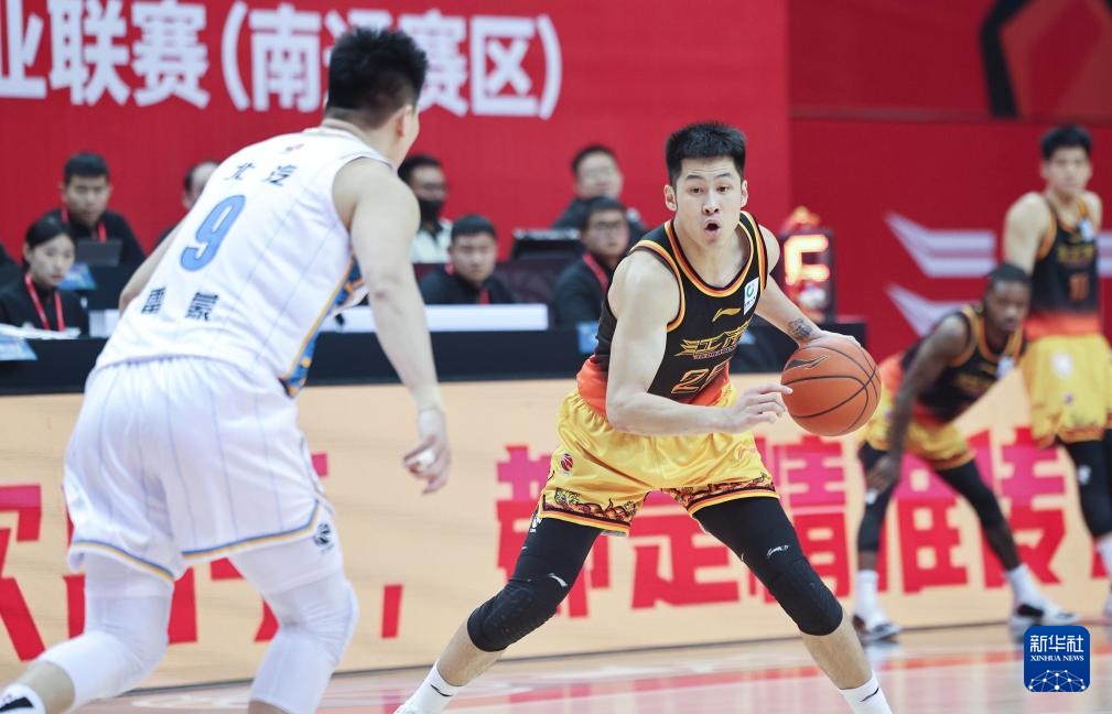 2月3日,北京北汽队球员方硕(右)在比赛中带球突破。新华社发(徐培钦摄)