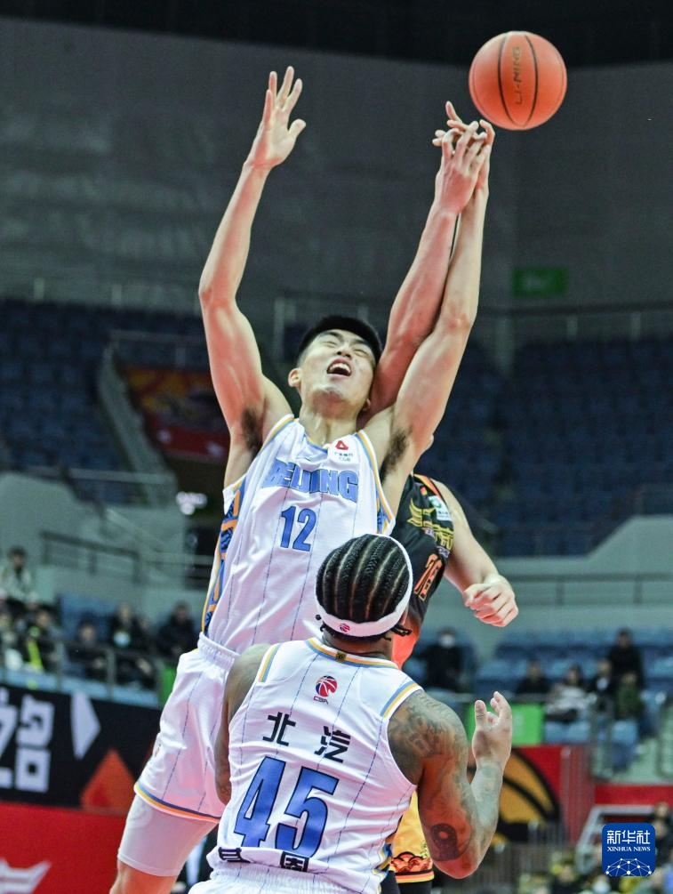 2月3日,北京北汽队球员范依铭(上)在比赛中拼抢。新华社发(王须中摄)