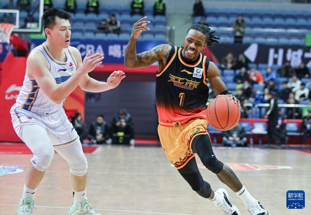 2月3日,江苏肯帝亚队球员莱利(右)在比赛中带球突破。新华社发(王须中摄)