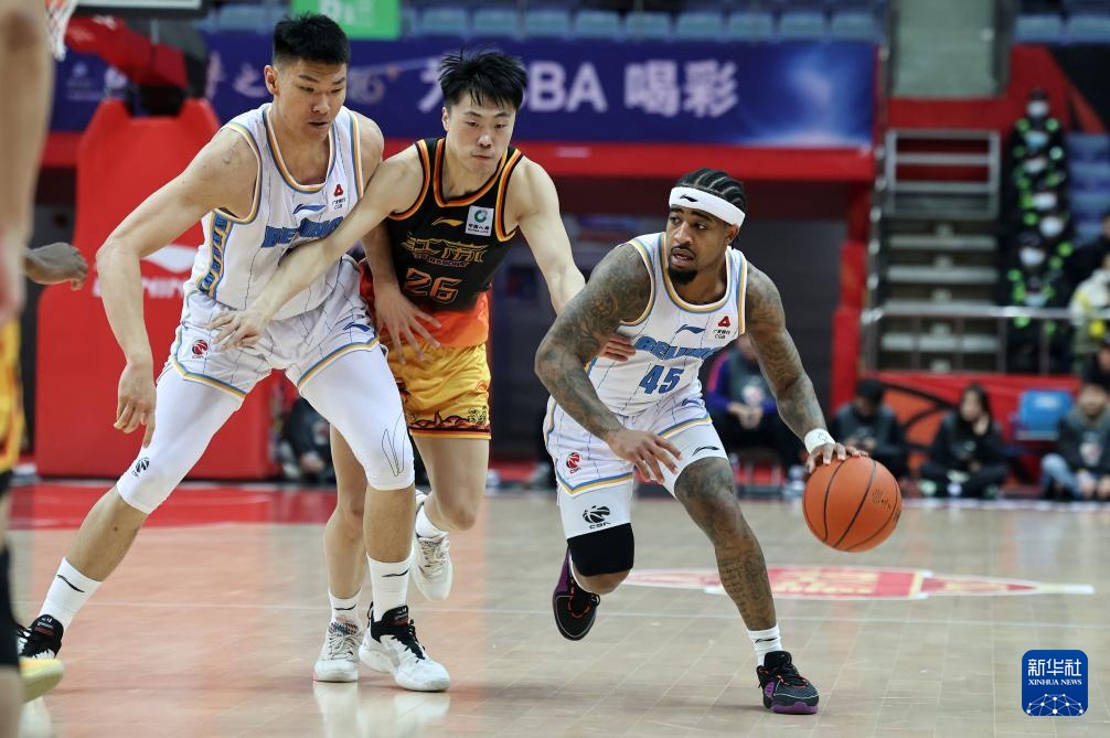 2月3日,北京北汽队球员基恩(右)在比赛中带球突破。新华社发(徐培钦摄)