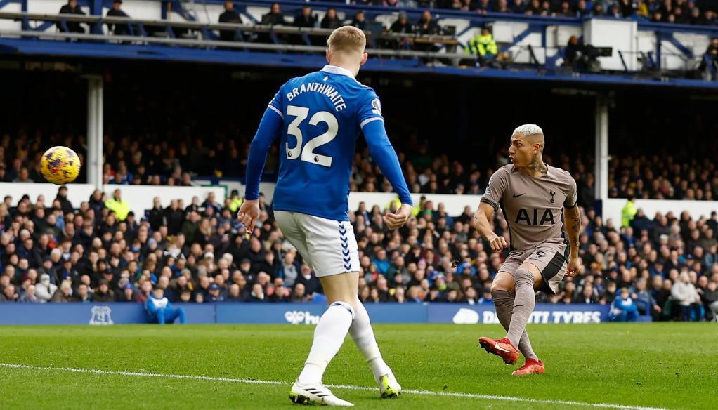 热刺队球员理查利森在比赛中射门。图片来自英超联赛官方网站
