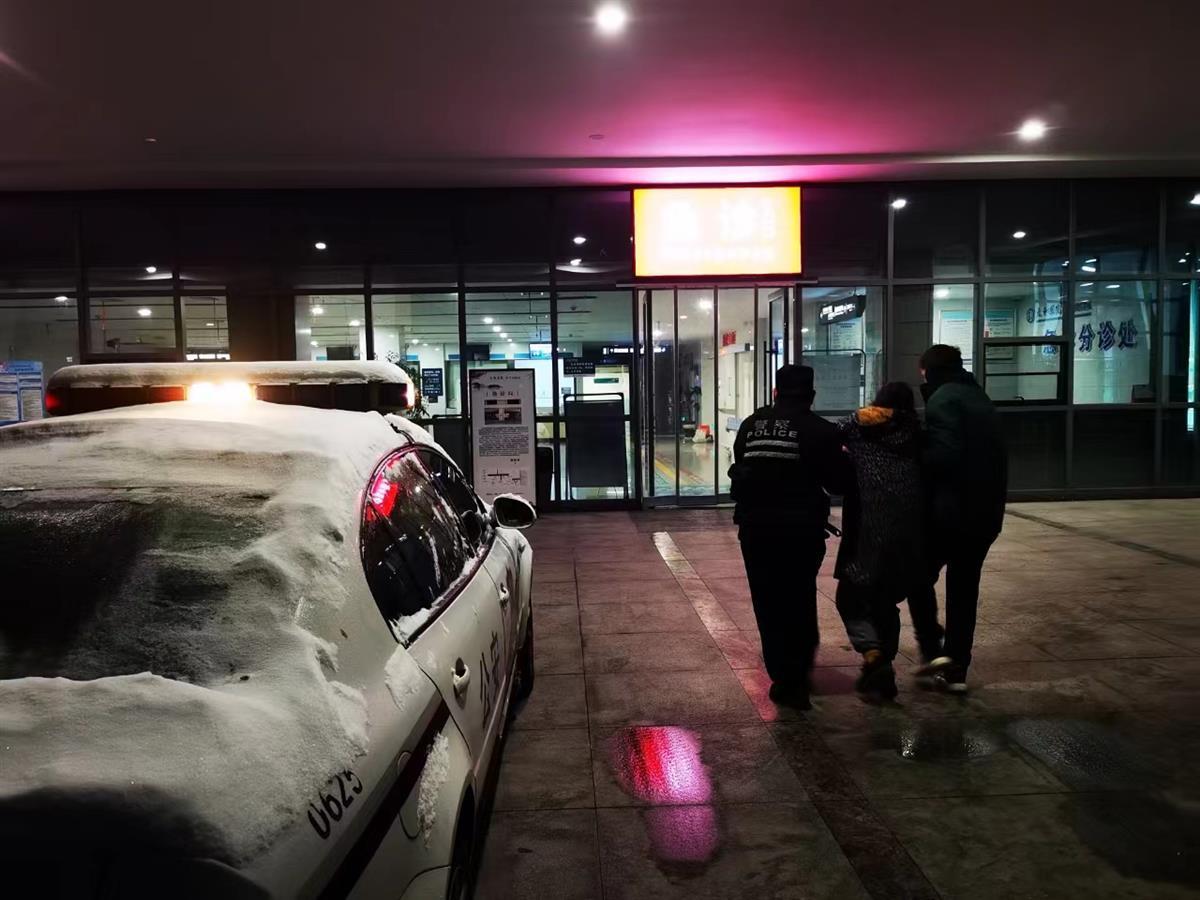 简单询问后,民警和群众将该女子搀扶到警车上,雪夜中驾车20公里将该女子送到医院治疗。