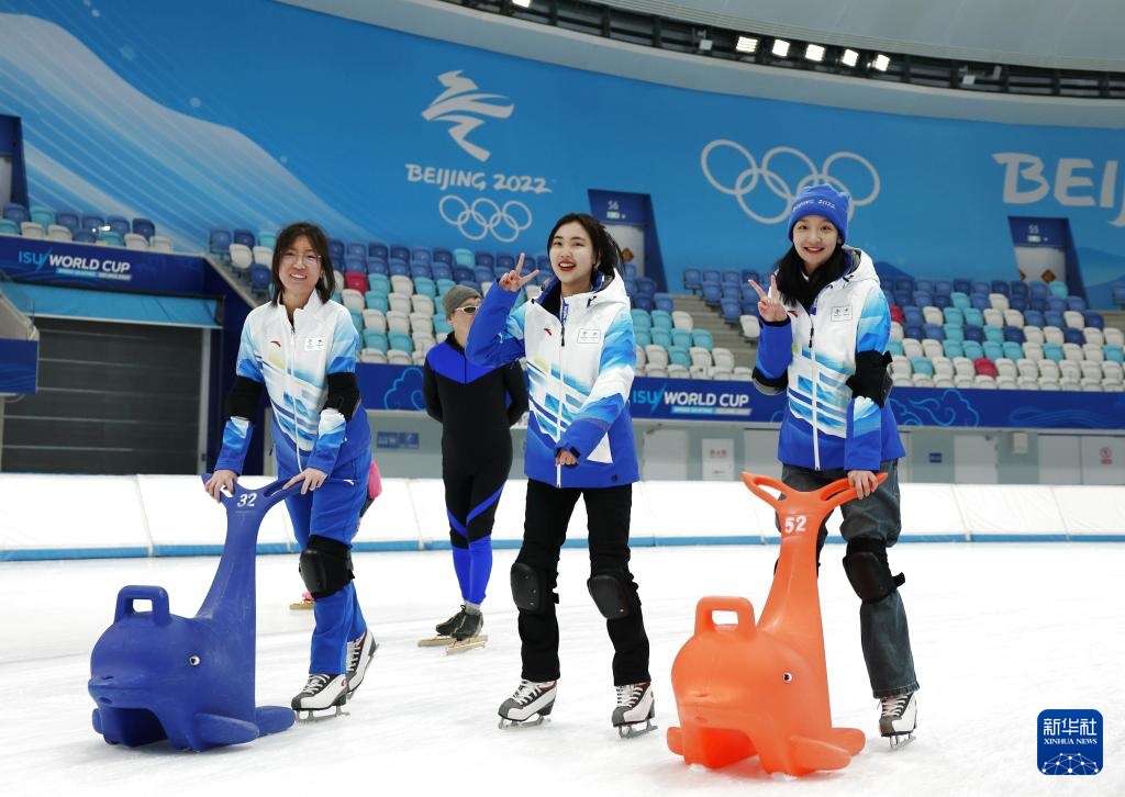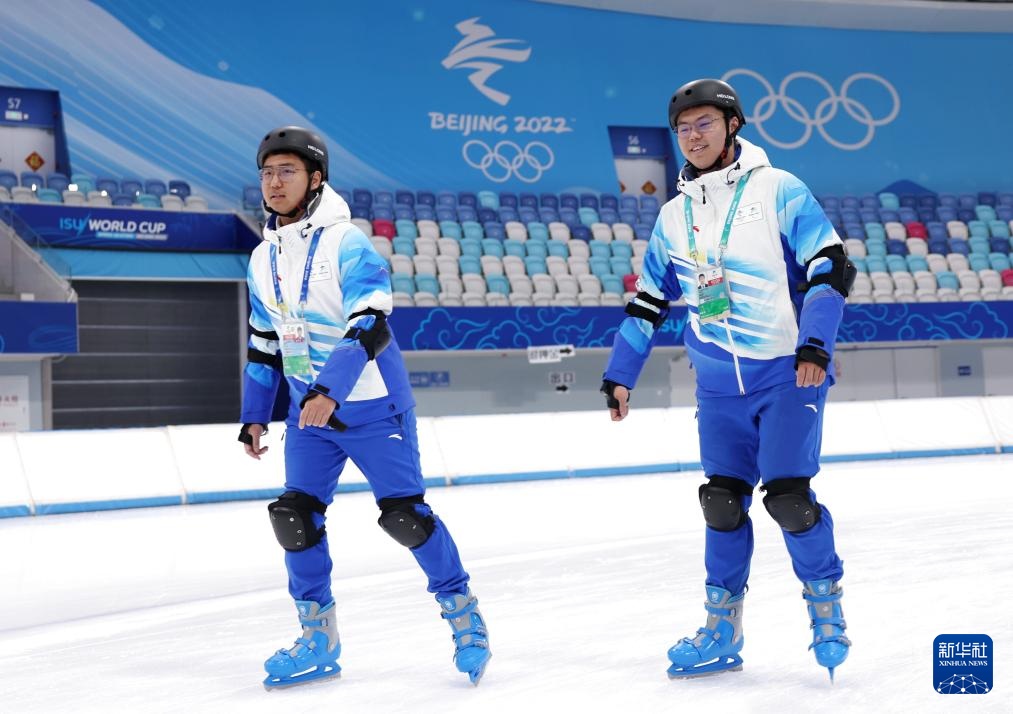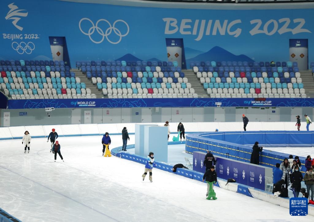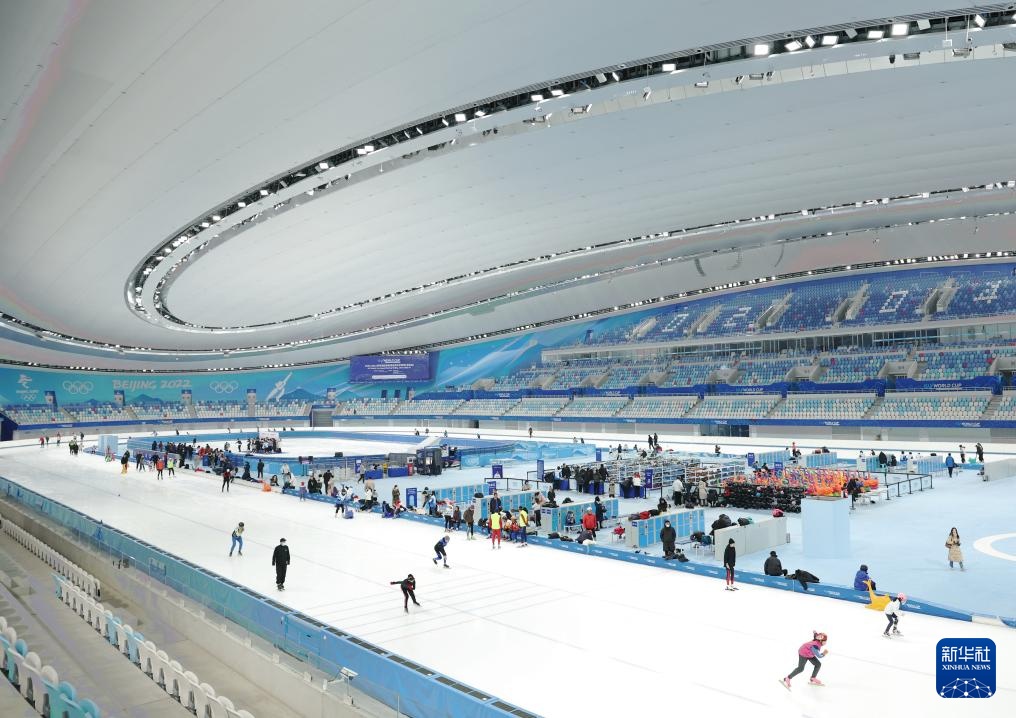 2月4日,北京冬奥会志愿者在国家速滑馆“冰丝带”内体验滑冰。新华社记者 张晨霖 摄