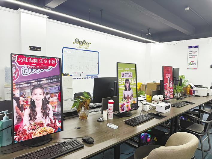 走进该公司AI数字人直播间,不见传统直播间的热火朝天,没有忙碌的运营人员,甚至没有产品。只有一排排竖屏显示器,屏幕上方主播们正在神采飞扬地直播卖货,下方则实时更新着观看人数、成交额等数据。