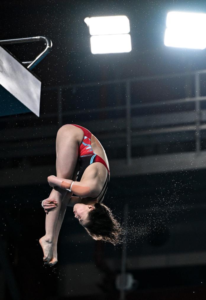 2月5日,全红婵在多哈游泳世锦赛跳水女单10米台决赛中。新华社记者 雒圆 摄