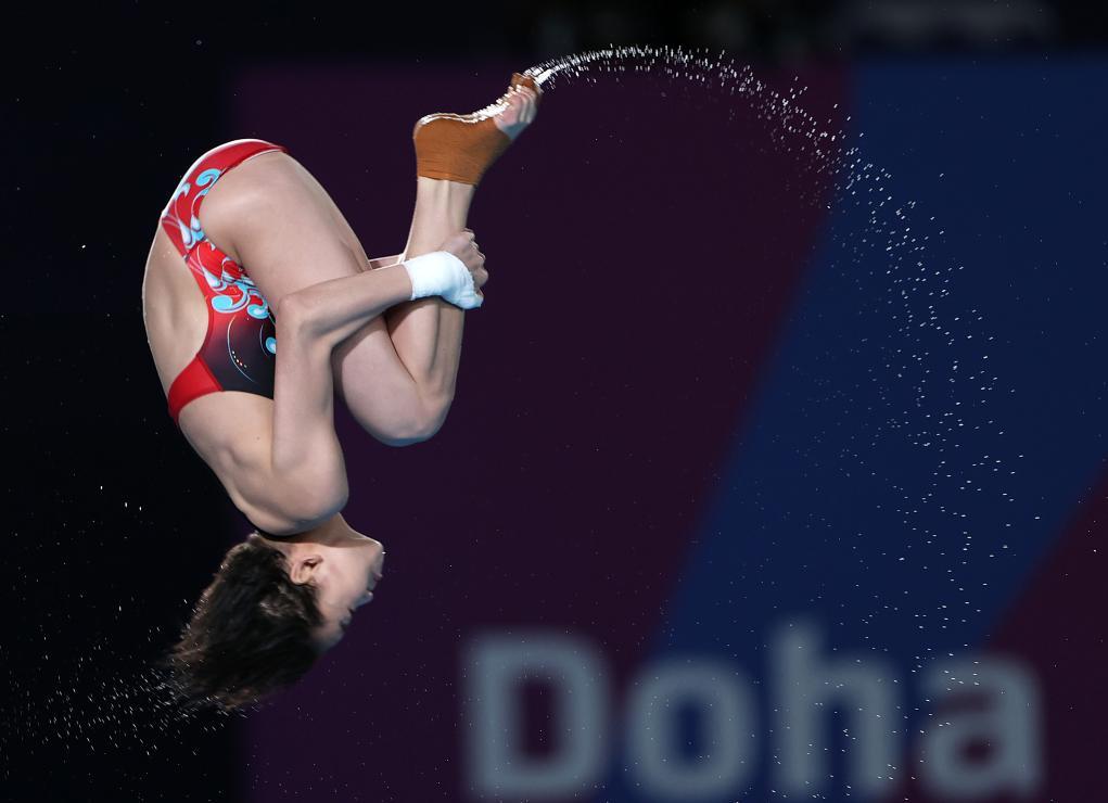 2月5日,陈芋汐在多哈游泳世锦赛跳水女单10米台决赛中。新华社记者 夏一方 摄