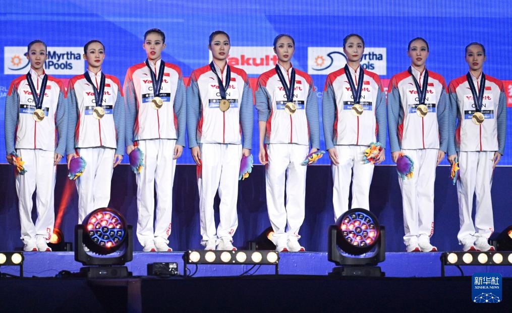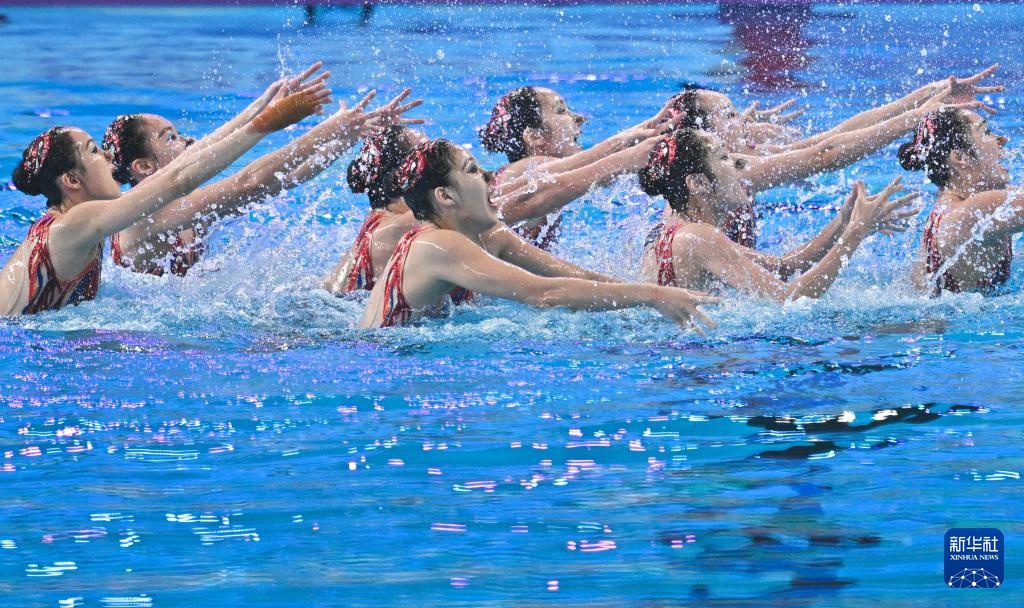 当日,2024年世界游泳锦标赛花样游泳集体技术自选决赛在卡塔尔多哈举行,中国队以299.8712分的成绩获得冠军。