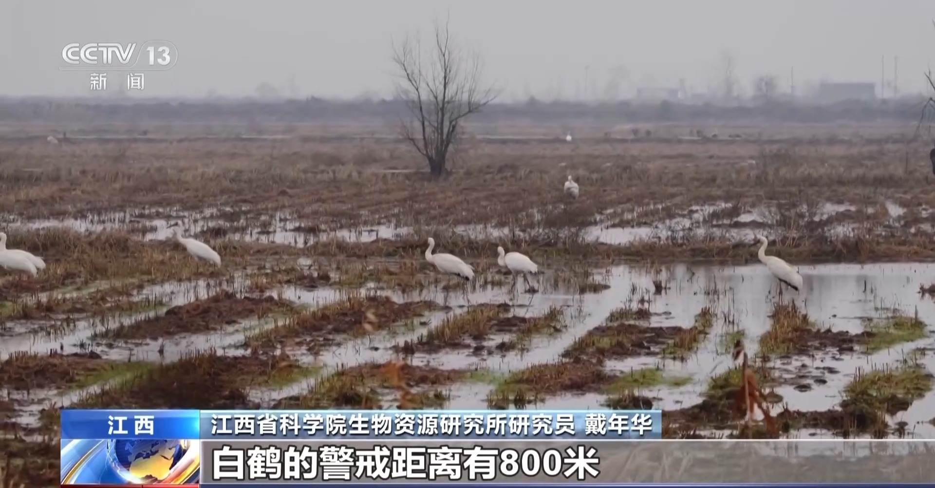 江西省科学院生物资源研究所研究员 戴年华:上世纪八十年代、九十年代,我们看白鹤,白鹤的警戒距离有800米,白鹤远远看到人就会飞。现在,我们看的大概不到50米,距离缩短,说明了人鸟和谐。