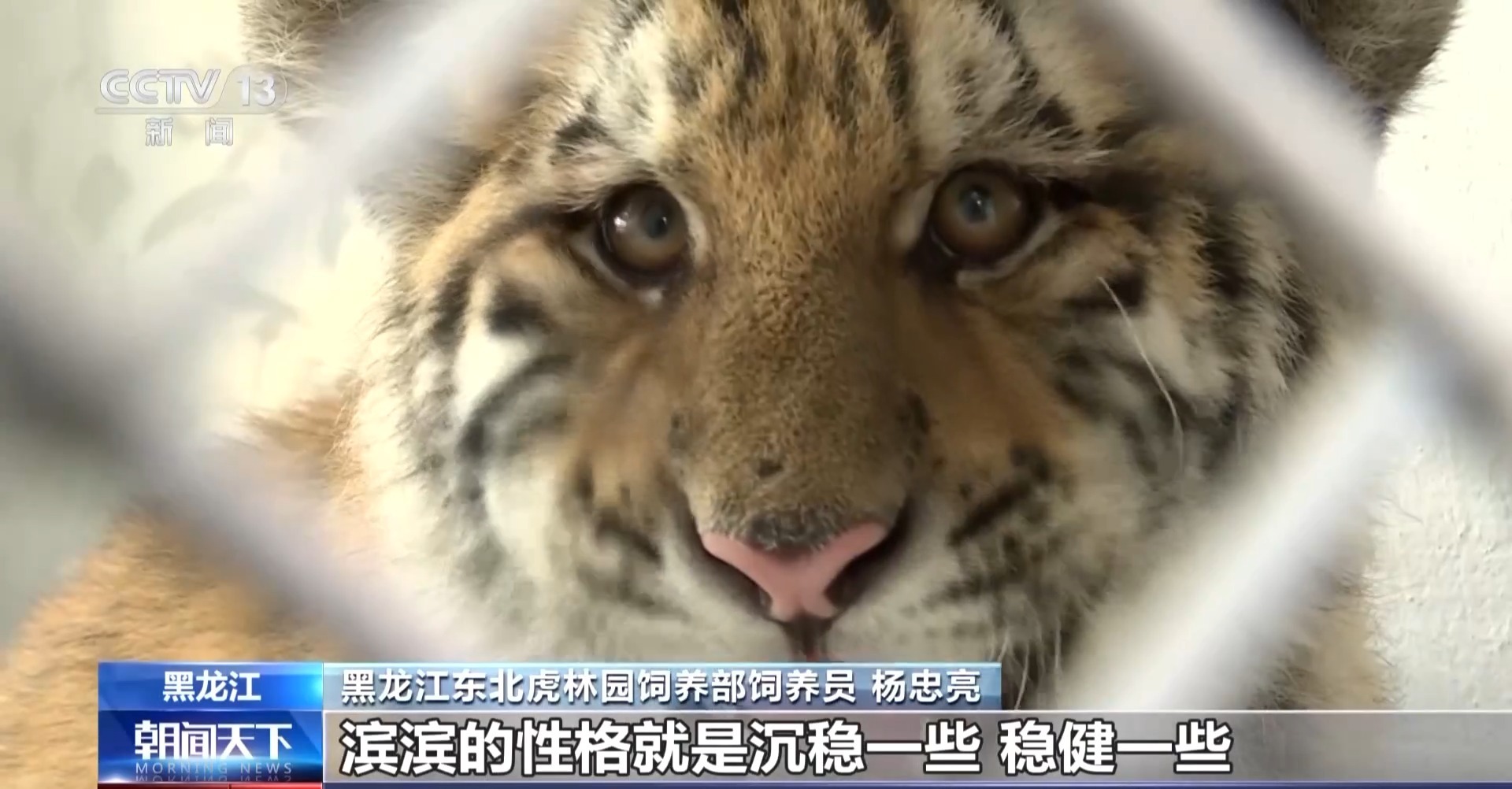 黑龙江东北虎林园饲养部饲养员 杨忠亮:滨滨的性格沉稳一些,稳健一些,妮妮活泼一些,好动一些,它俩性格有一些互补性。