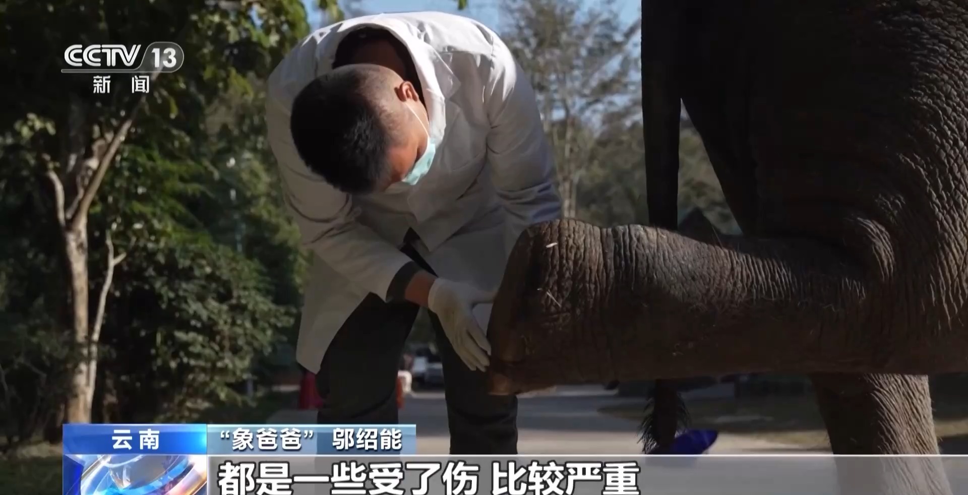 “象爸爸” 邬绍能:这些大象来到我们中心之前,都是一些受伤比较严重或者生理上有一些疾病的大象,经过我们长时间的精心护理饲养,目前这些大象,每天它们的身体都会有一些变化。