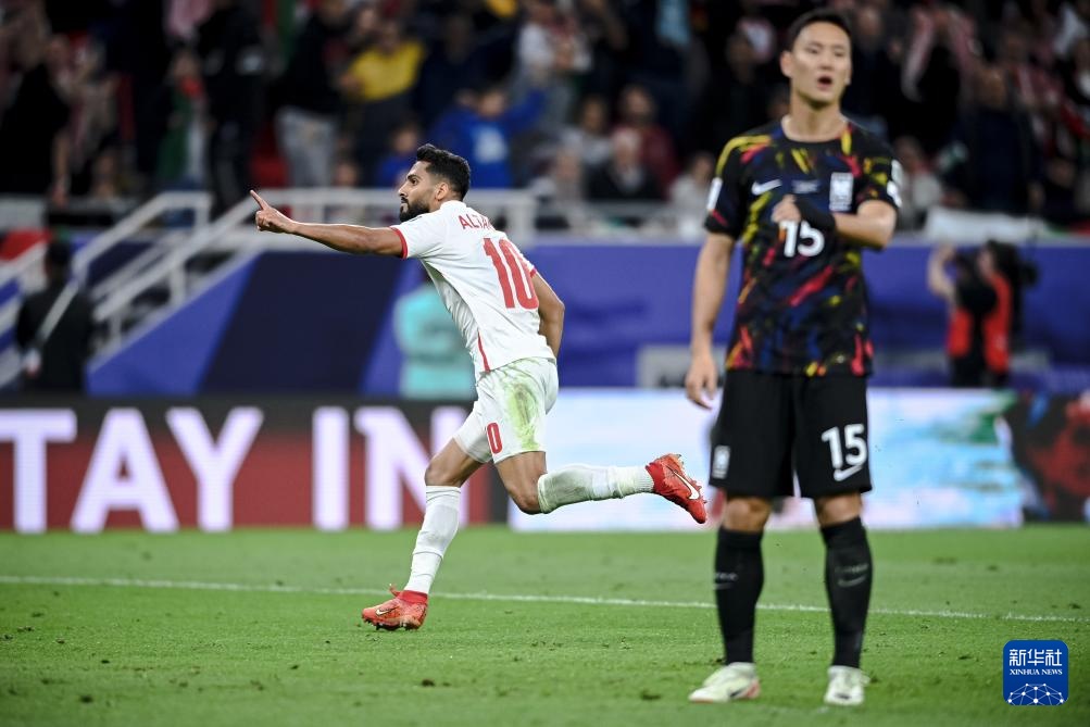 当日,在卡塔尔艾哈迈德·本·阿里体育场举行的男足亚洲杯半决赛中,约旦队2比0战胜韩国队,晋级决赛。