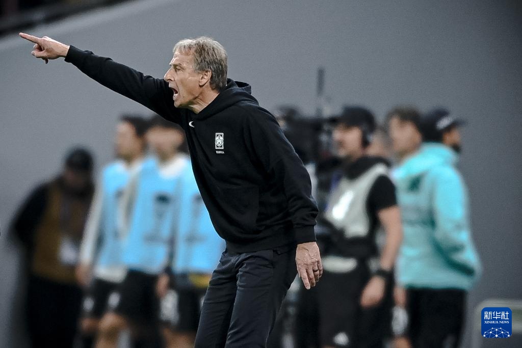 2月6日,韩国队主教练克林斯曼在比赛中指挥。新华社记者 江汉 摄