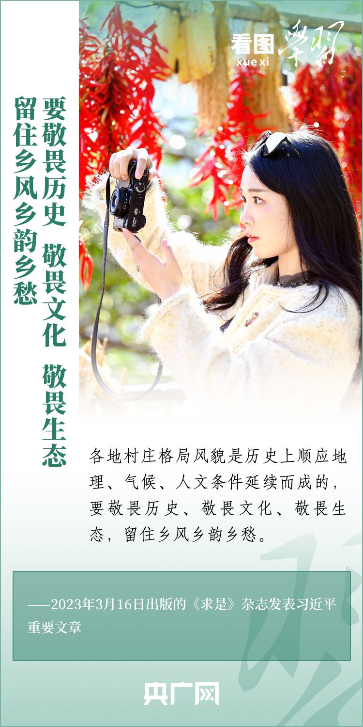 2024年中央一号文件近日发布,要求各地学习运用“千村示范、万村整治”工程经验,有力有效推进乡村全面振兴。文件明确提出,要以确保国家粮食安全、确保不发生规模性返贫为底线,以提升乡村产业发展水平、提升乡村建设水平、提升乡村治理水平为重点,打好乡村全面振兴漂亮仗,绘就宜居宜业和美乡村新画卷。《看图学习》特梳理近两年习近平总书记关于建设宜居宜业和美乡村的重要论述,一起来学习!