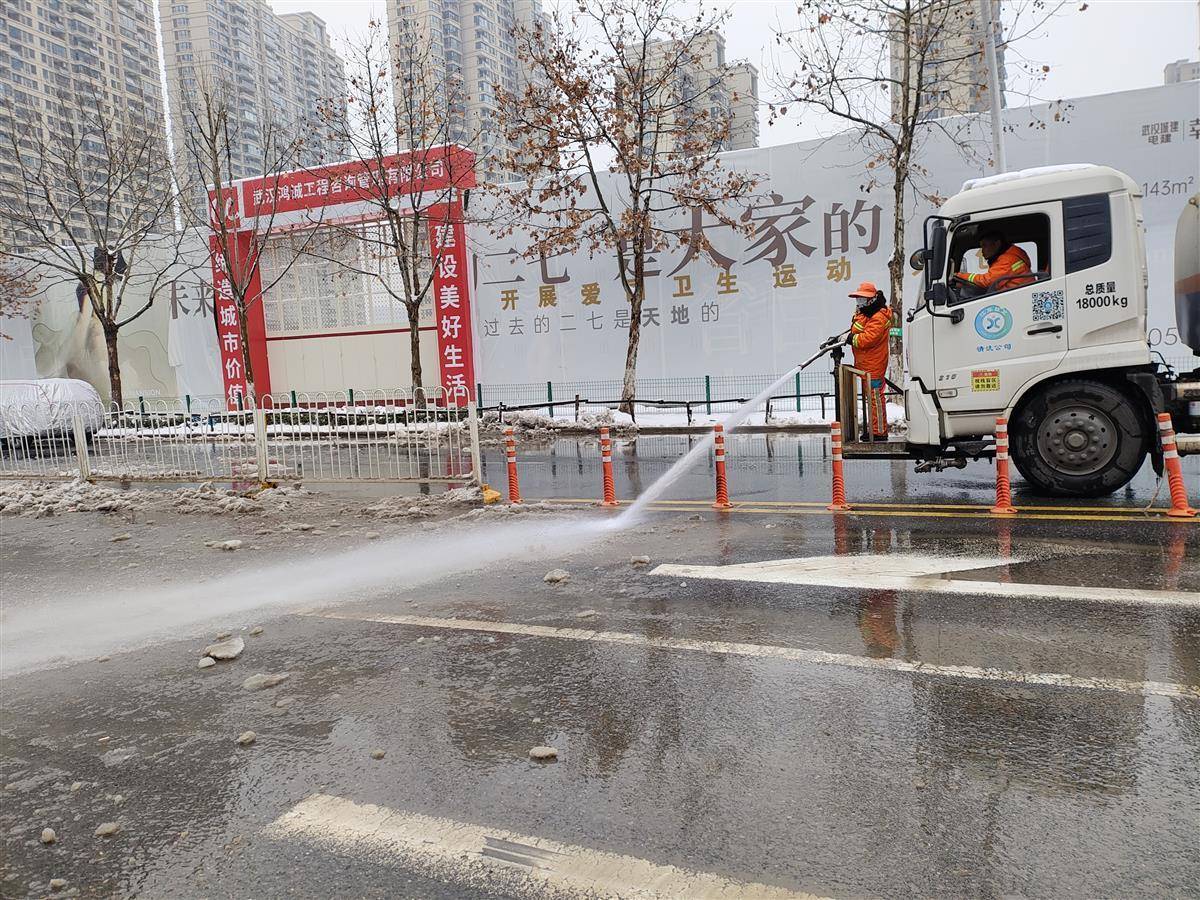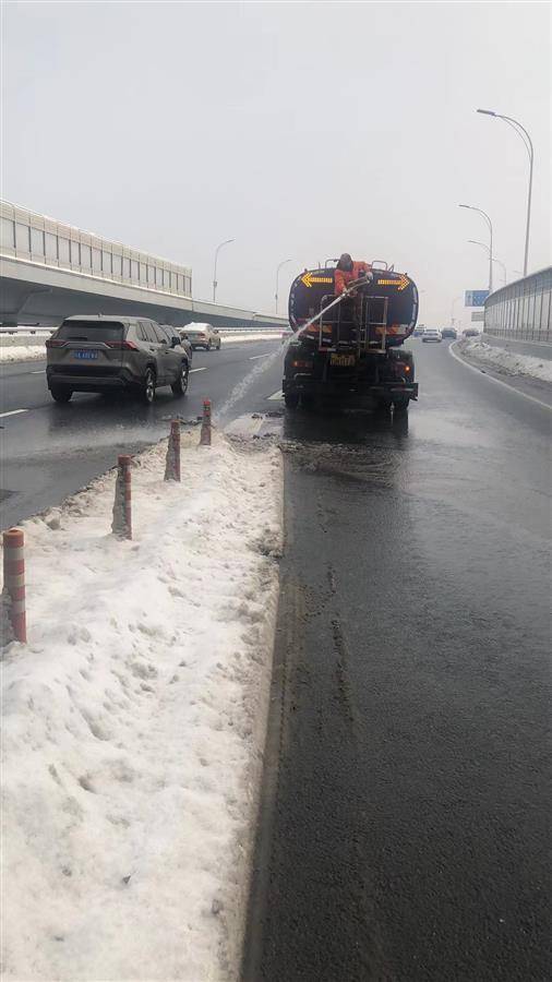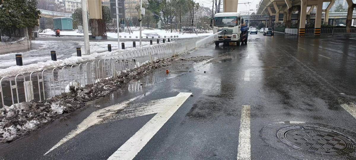7日,武汉市气温回升至2℃。利用回温的有利条件,武汉城管按照环境卫生作业规范要求,结合业内专家意见建议和一线作业人员经验,创新除雪作业手段,采取高压清洗车装载液态融雪剂,对全市主要城市道路、桥梁以及窗口地带、特色街区、商业体周边等重点路段进行点对点深度冲洗,以尽快清除道路两侧积雪,恢复道路畅通。