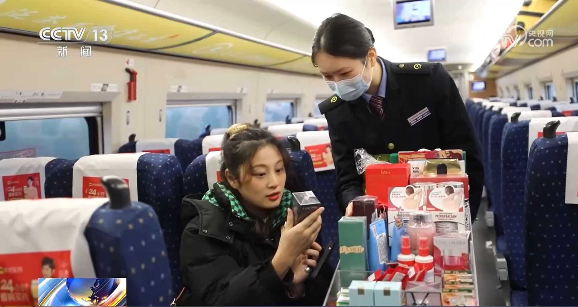 央视网消息:今年春运期间,中欧班列进口保税店在多趟高铁列车上设置了移动售卖点。让回家的旅客在旅途中也能体验到“全球购”,把“洋年货”带回家。
