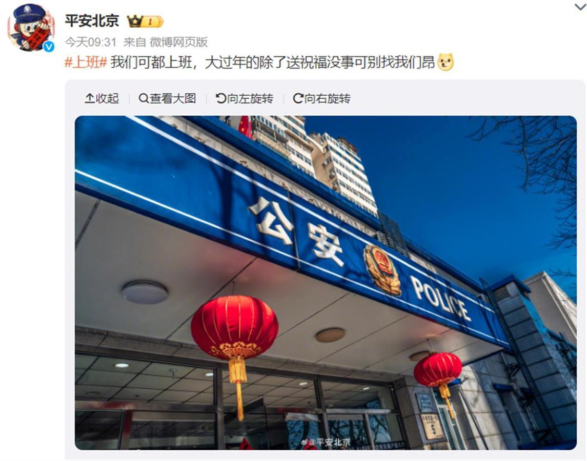 平安北京发出了除夕上班的安全提醒 (图源:微博)