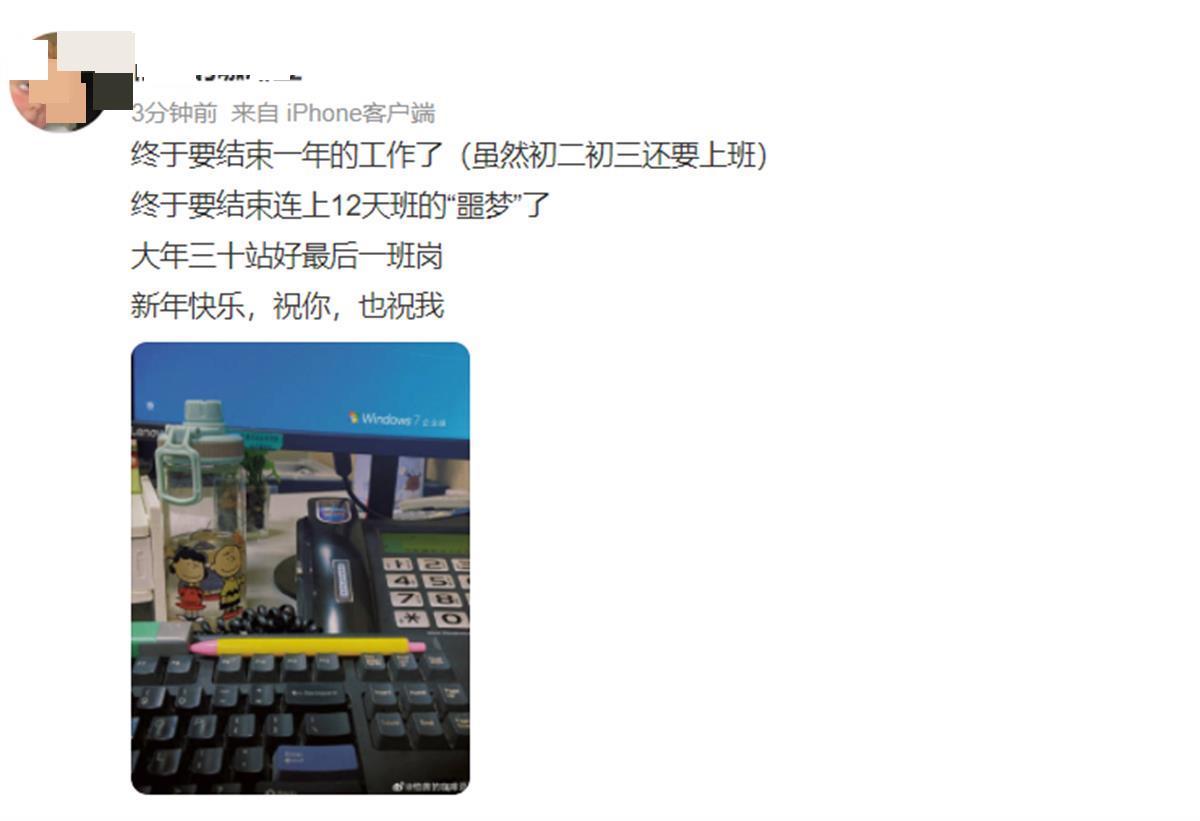 不少网友分享了除夕上班的心情 (图源:微博)