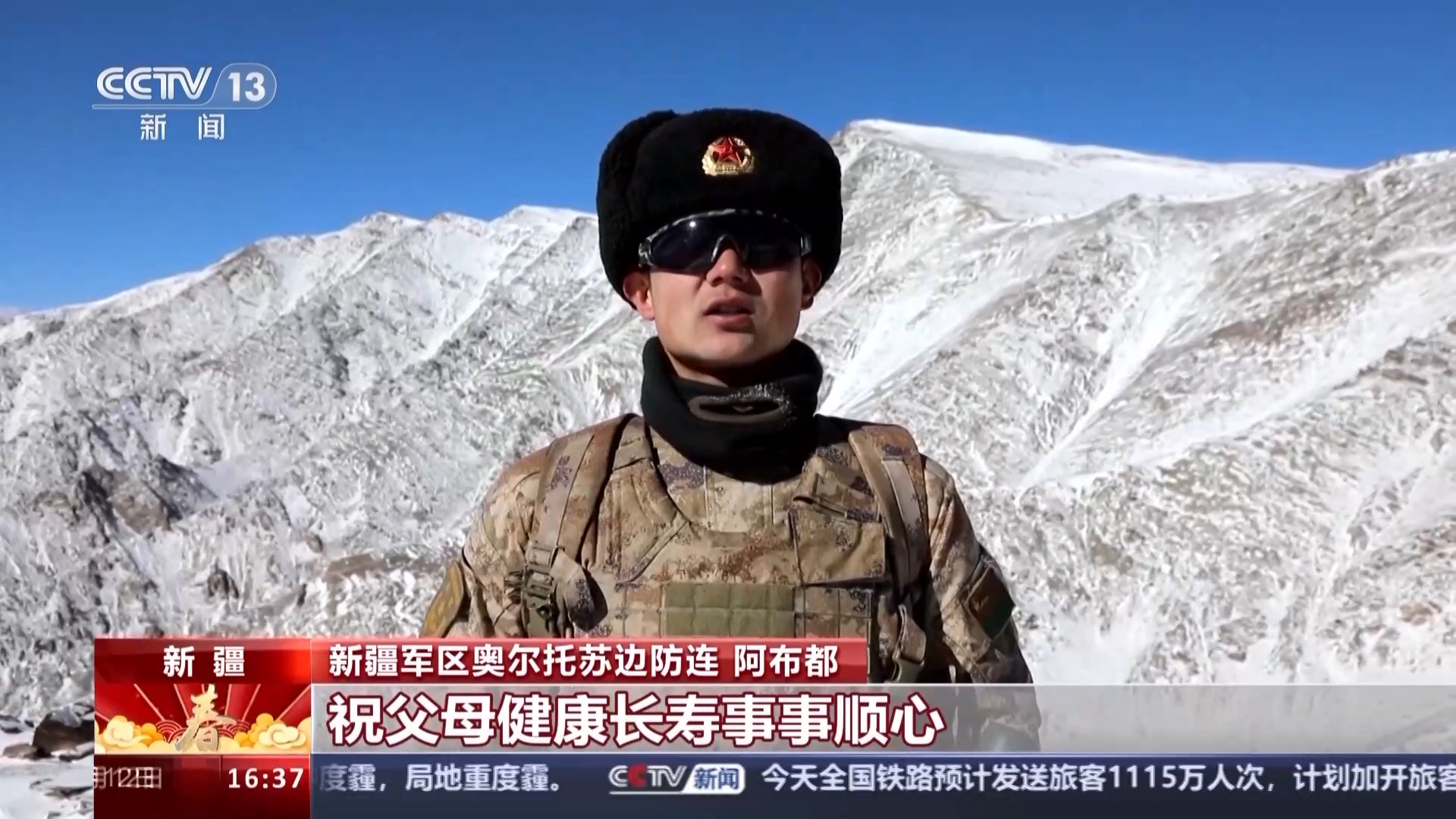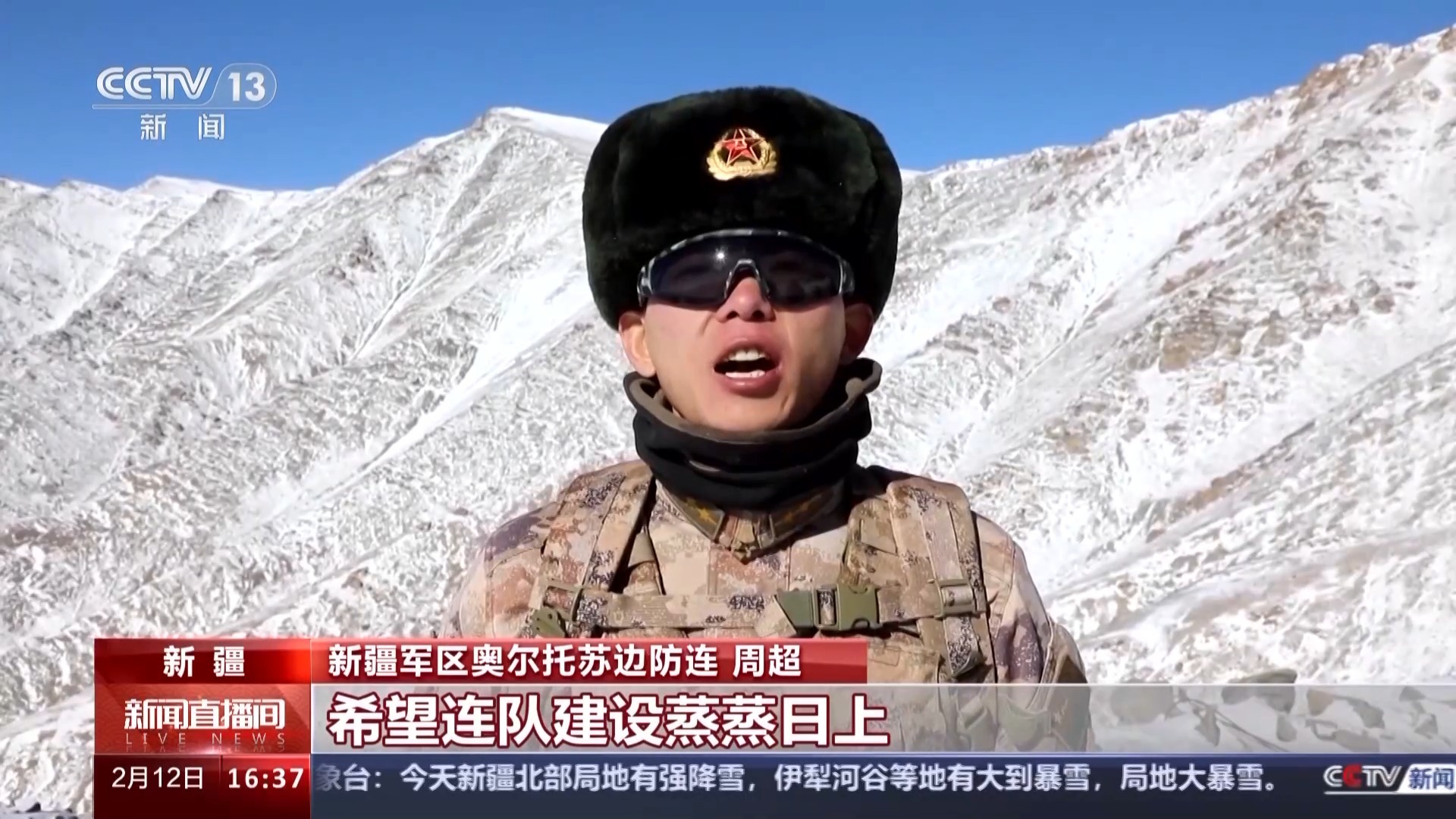 新疆军区奥尔托苏边防连 周超:接下来,我们将对边境一线进行巡逻观察,对边防基础设施进行检查维护,确保边境不发生任何安全问题,在春节期间,让人民过上一个安定祥和的春节。用忠诚和实际行动,守护好祖国的西大门。