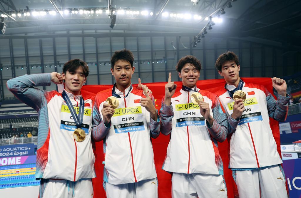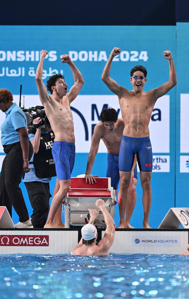 11日,中国农历甲辰龙年大年初二,多哈世界游泳锦标赛游泳项目第一个比赛日,潘展乐和队友季新杰、张展硕、王浩宇在男子4×100米自由泳接力决赛中以3分11秒08赢得金牌,为中国男子游泳创造历史!中国游泳此前还从未获得过世锦赛或者奥运会的男子接力冠军。