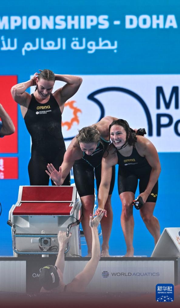 当日,2024年世界游泳锦标赛游泳项目女子4X100米自由泳接力决赛在卡塔尔多哈举行。