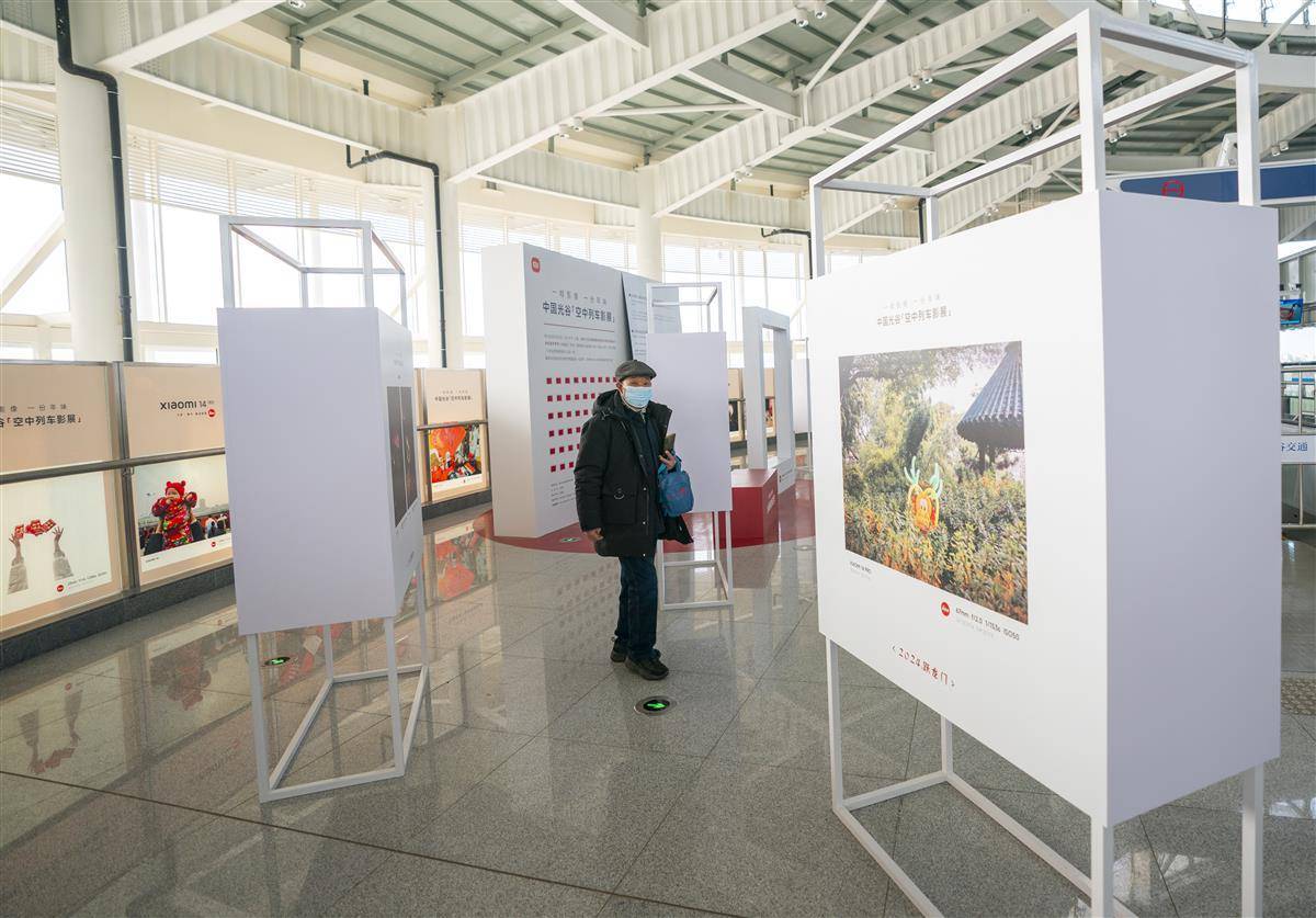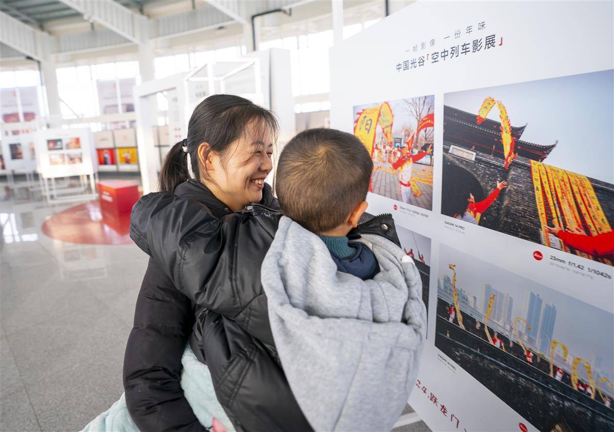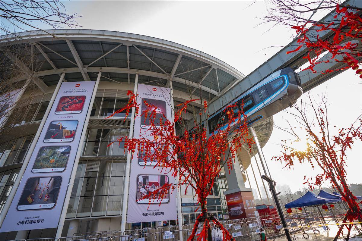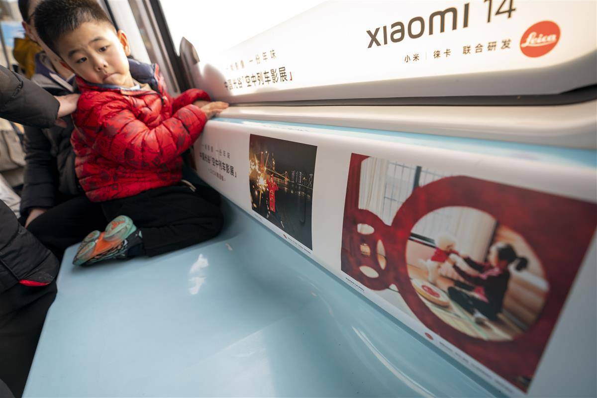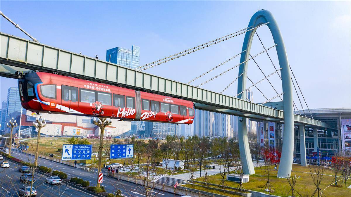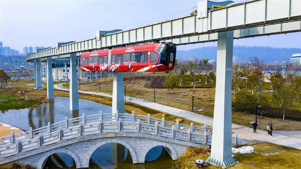 2月8日,空轨高新大道站,中国光谷“空中列车影展”开展,涂装成醒目红色的影展专列穿梭在空中。影展以农历新年为主题,围绕“甜蜜蜜”“想见你”“烟火气”“跃龙门”4个主题展开,用影像故事带给乘客不一样的年味。展览时间持续至2月24日。中国光谷“空中列车影展”专列同步开行,通体新年红,让市民、游客体验到浓浓的年味。