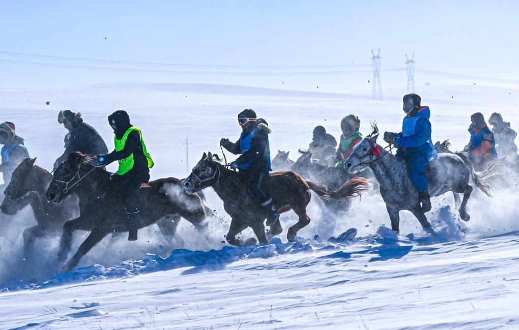 凌冽的寒风中,数百匹蒙古马奔驰在茫茫雪原,激起阵阵雪雾。这是在锡林郭勒盟举行的蒙古马超级联赛,也被当地人称为“马超”。锡林郭勒盟马文化底蕴丰厚,赛马比赛一直深受当地牧民喜爱。
