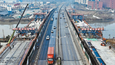 示范区优化区域交通路网,城乡交通一体化不断深入,群众出行便利度进一步增强。图为平黎公路嘉善段改(扩)建工程桥梁建设现场。 胡凌翔摄(影像中国) |